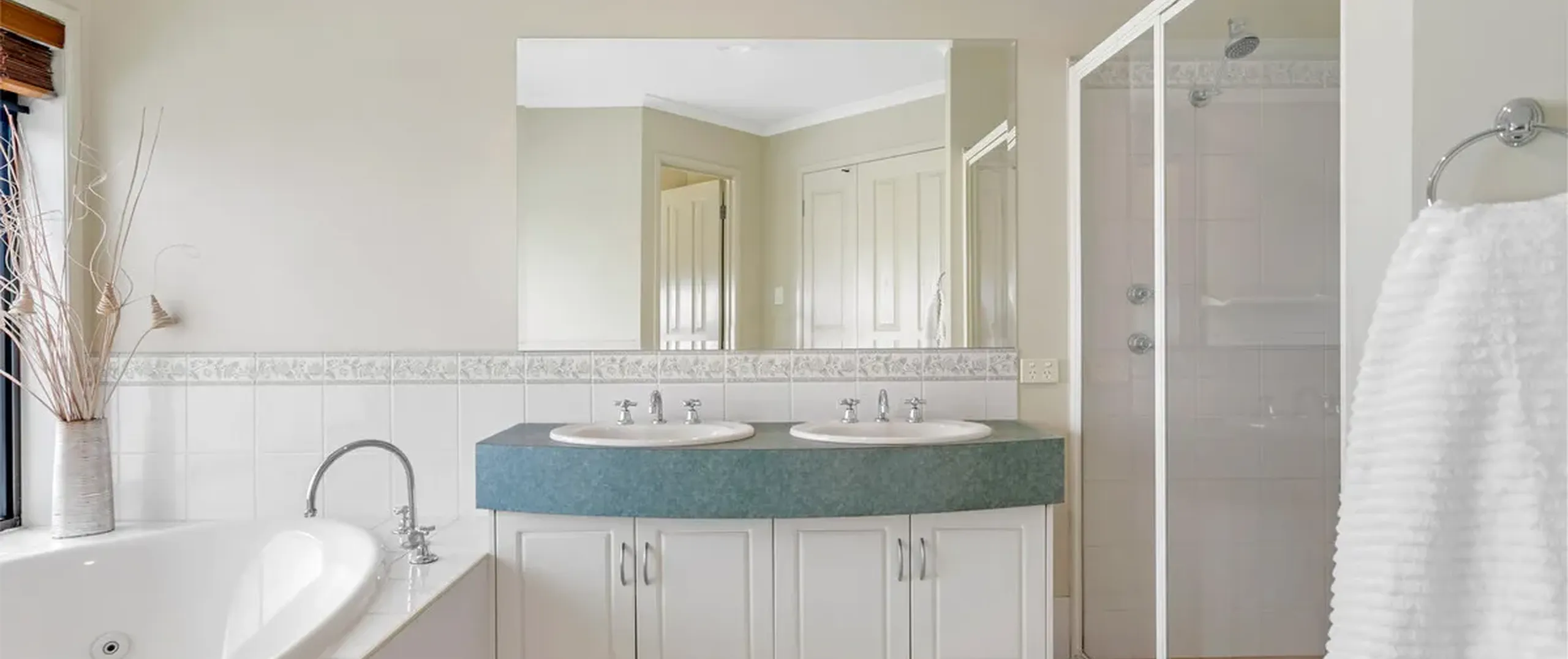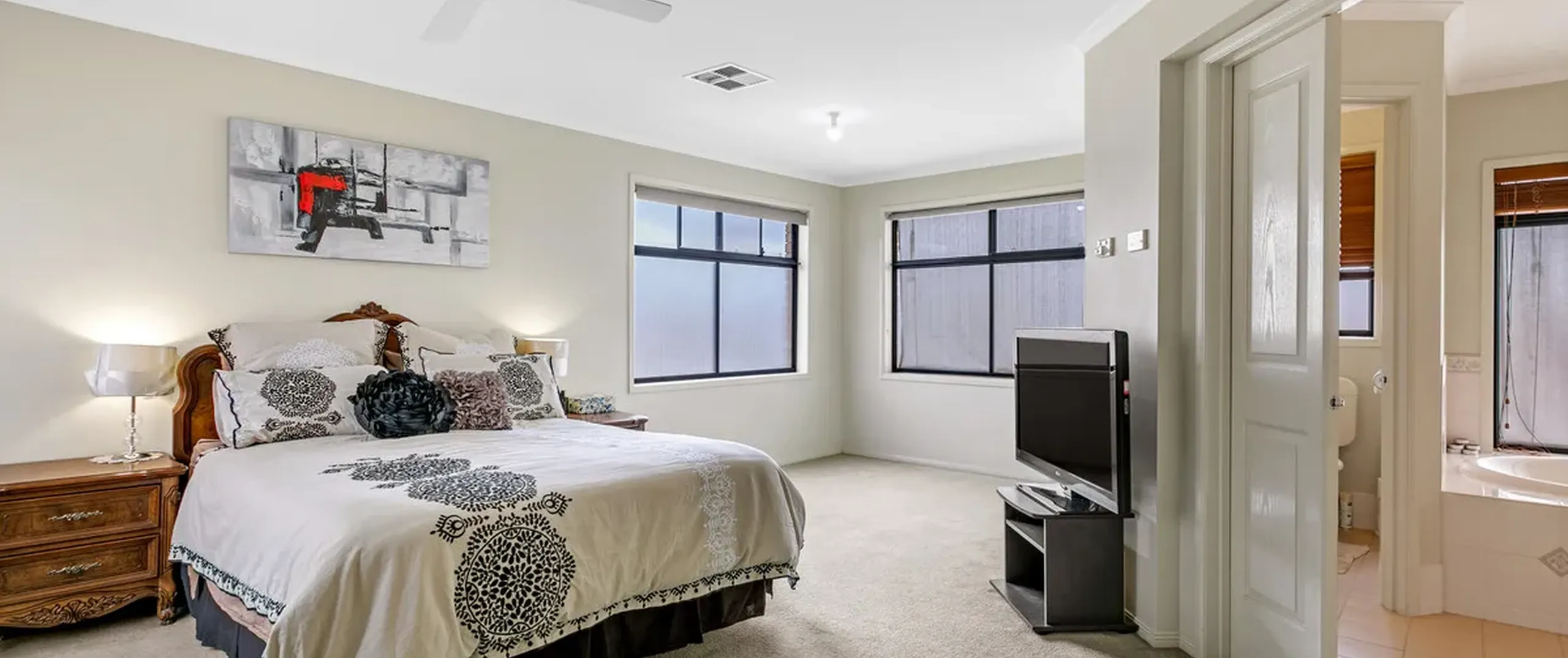 - Large bedroom 1 with grand double door entry, large walk-in robe and ensuite with spa bath, separate shower and double sinks