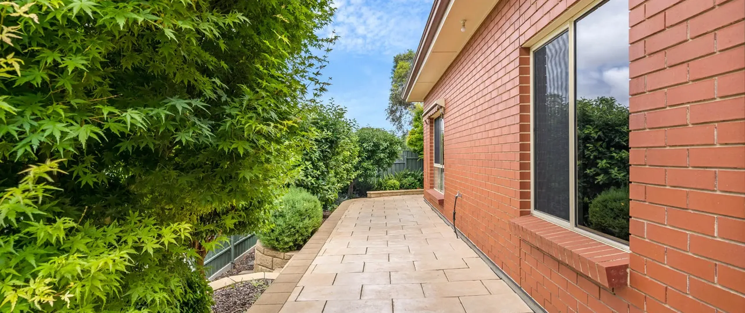 - Fully fenced, low maintenance yard with garden shed and rain water tank