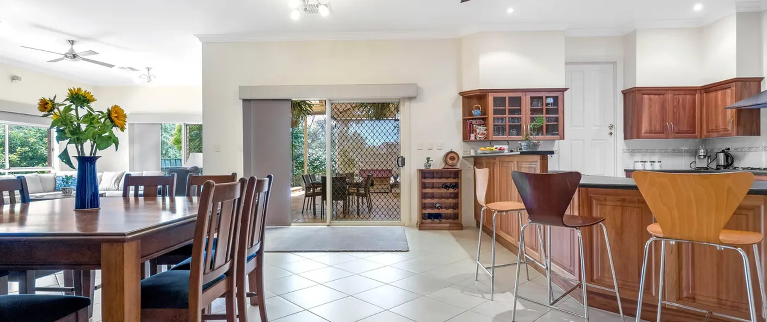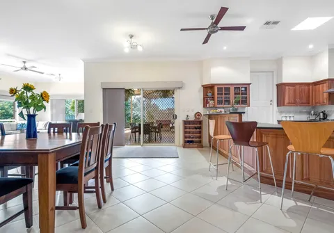 - Commodious open plan dining and living areas with ceiling fans and sliding doors to alfresco