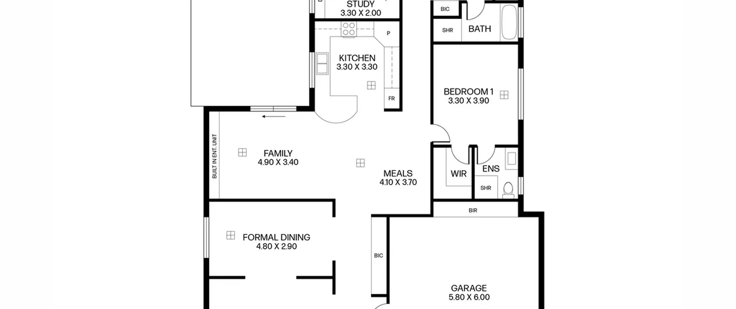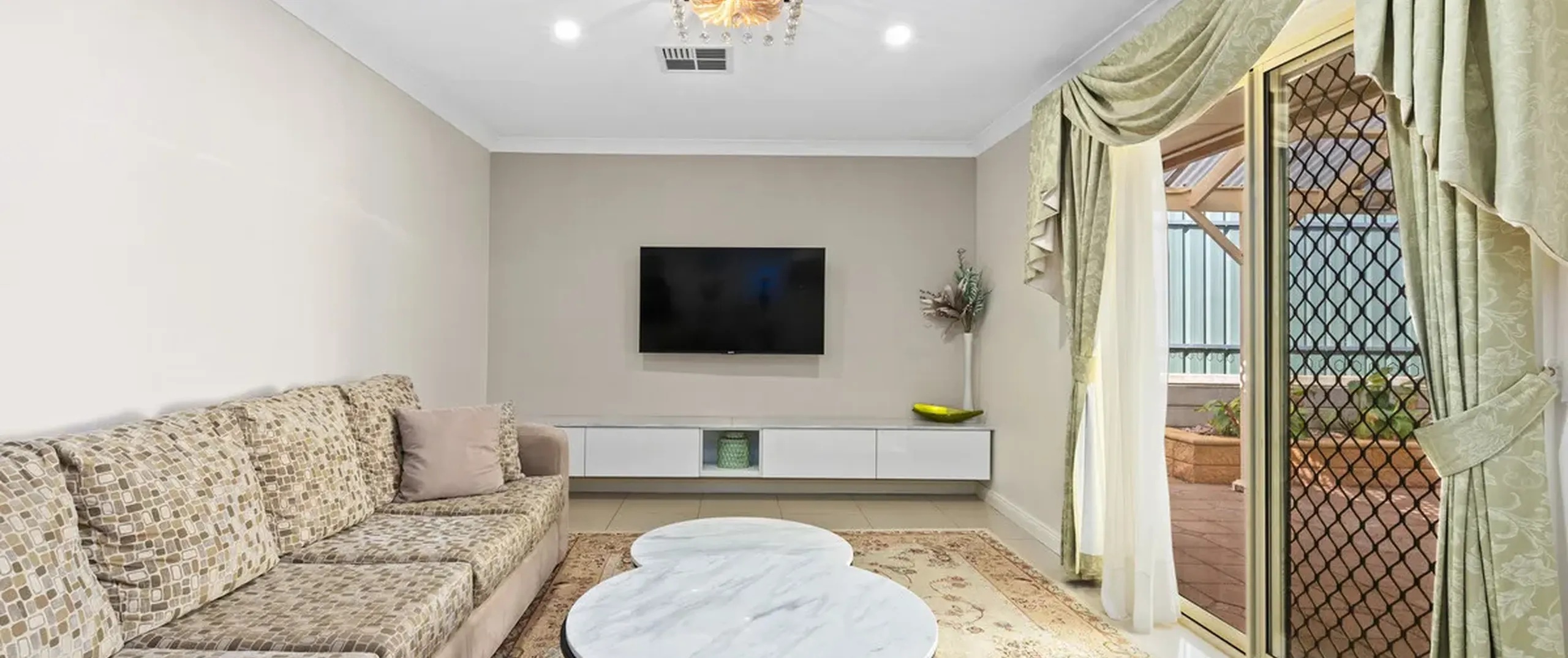 - Spacious open plan family and meals area with built-in entertainment unit