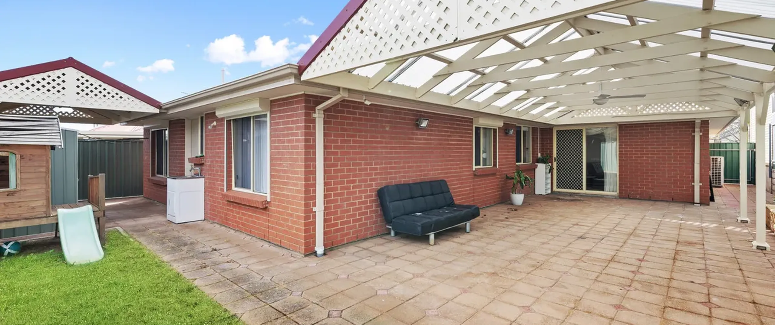 - Fully fenced, low maintenance yard with garden shed