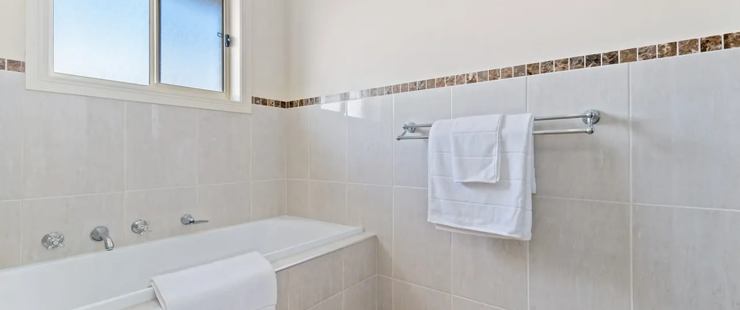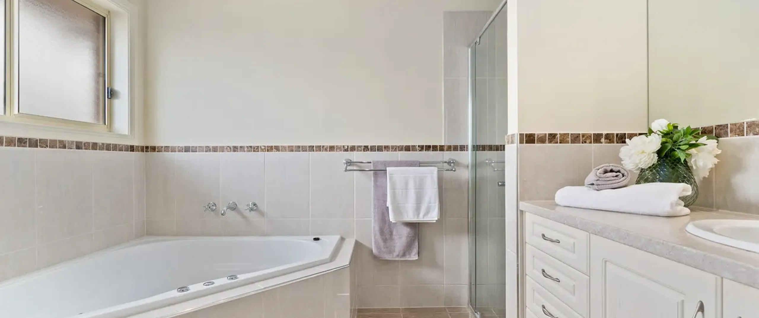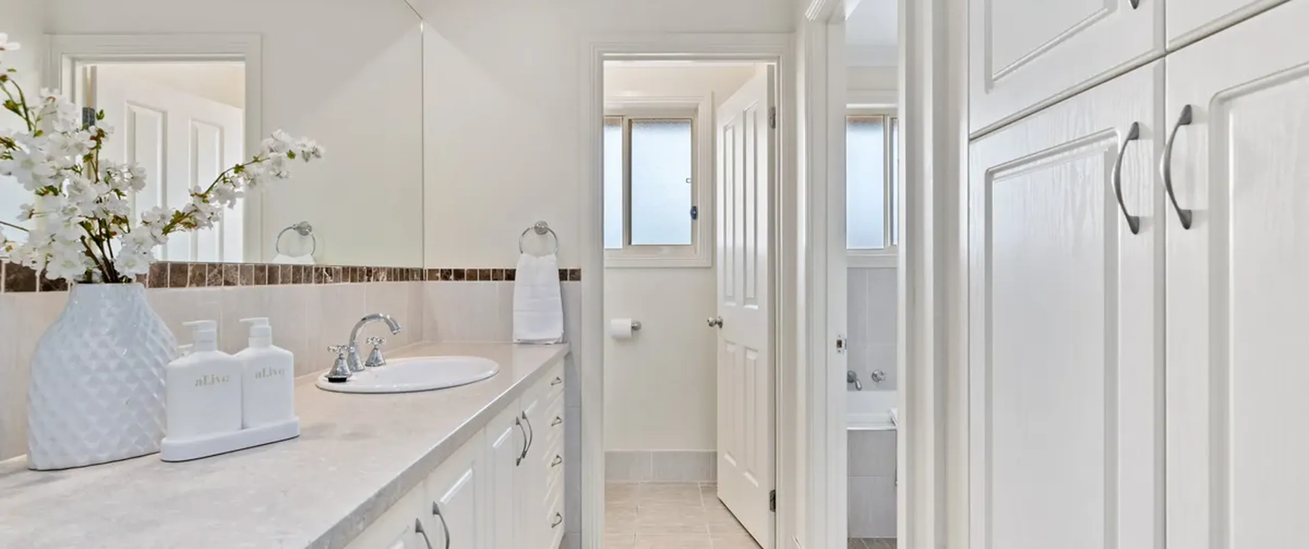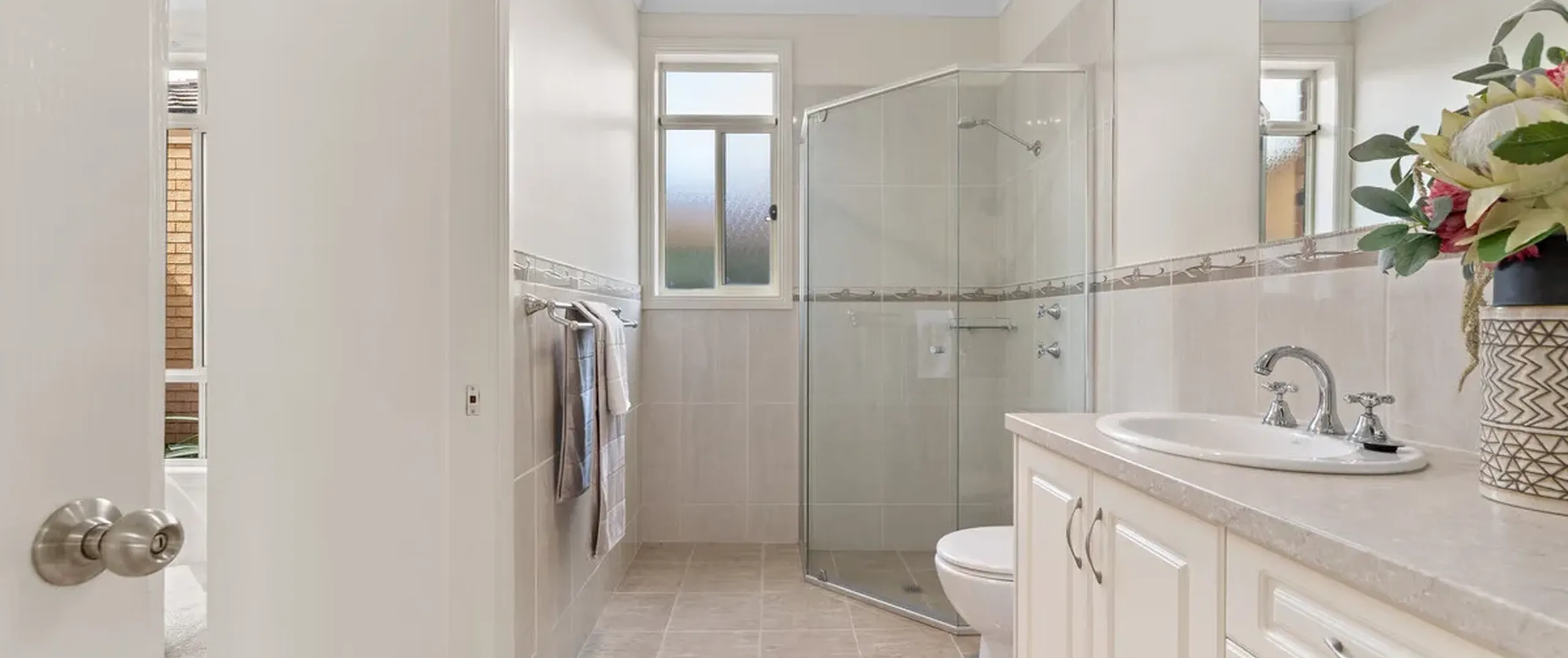 - Spacious three-way bathroom with bath and shower