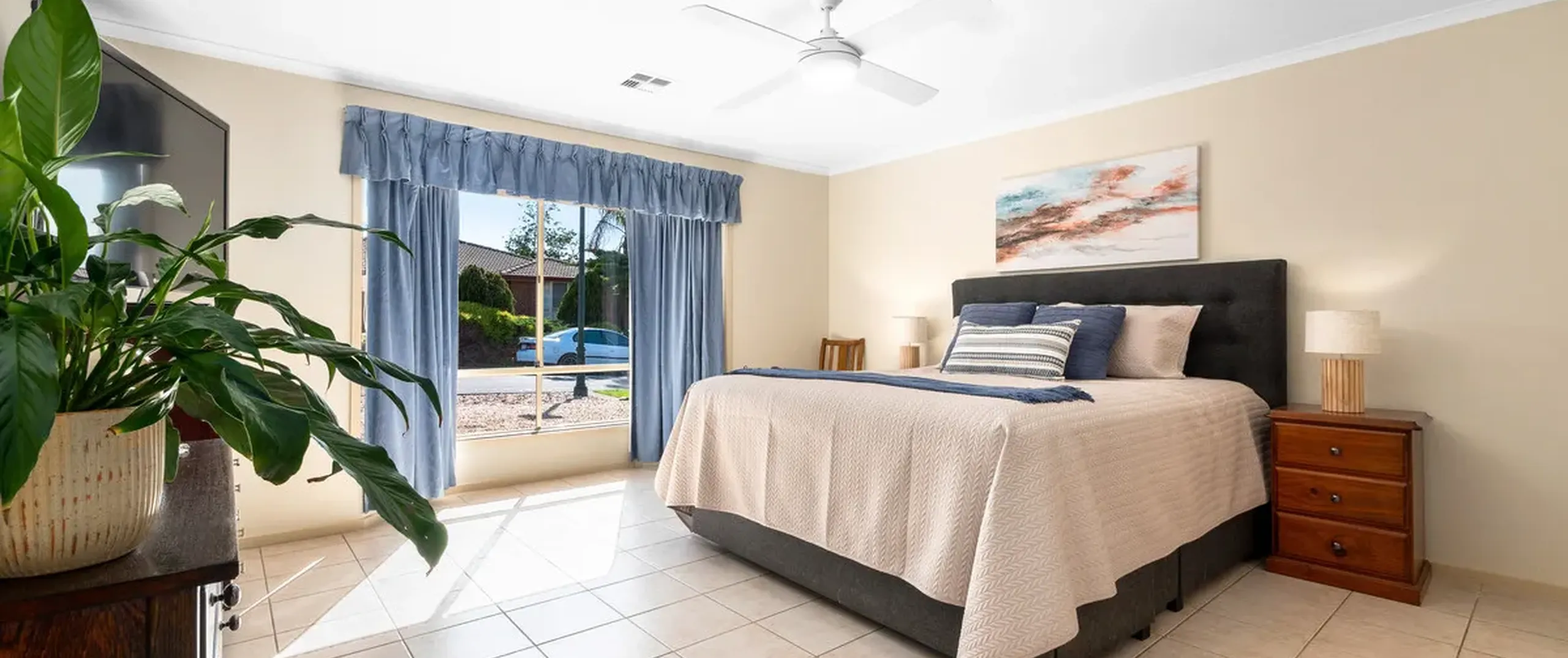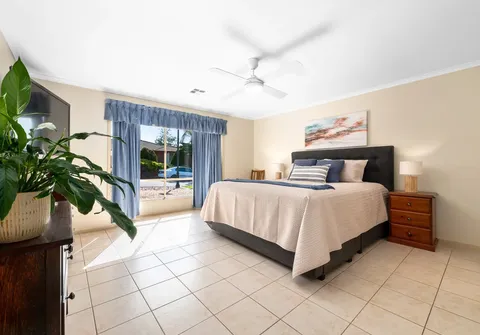 - Master bedroom with feature bay window, walk-in robe, ensuite with dual basins and ceiling fan