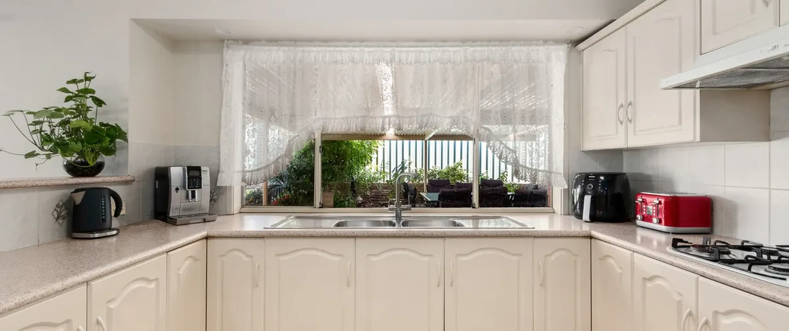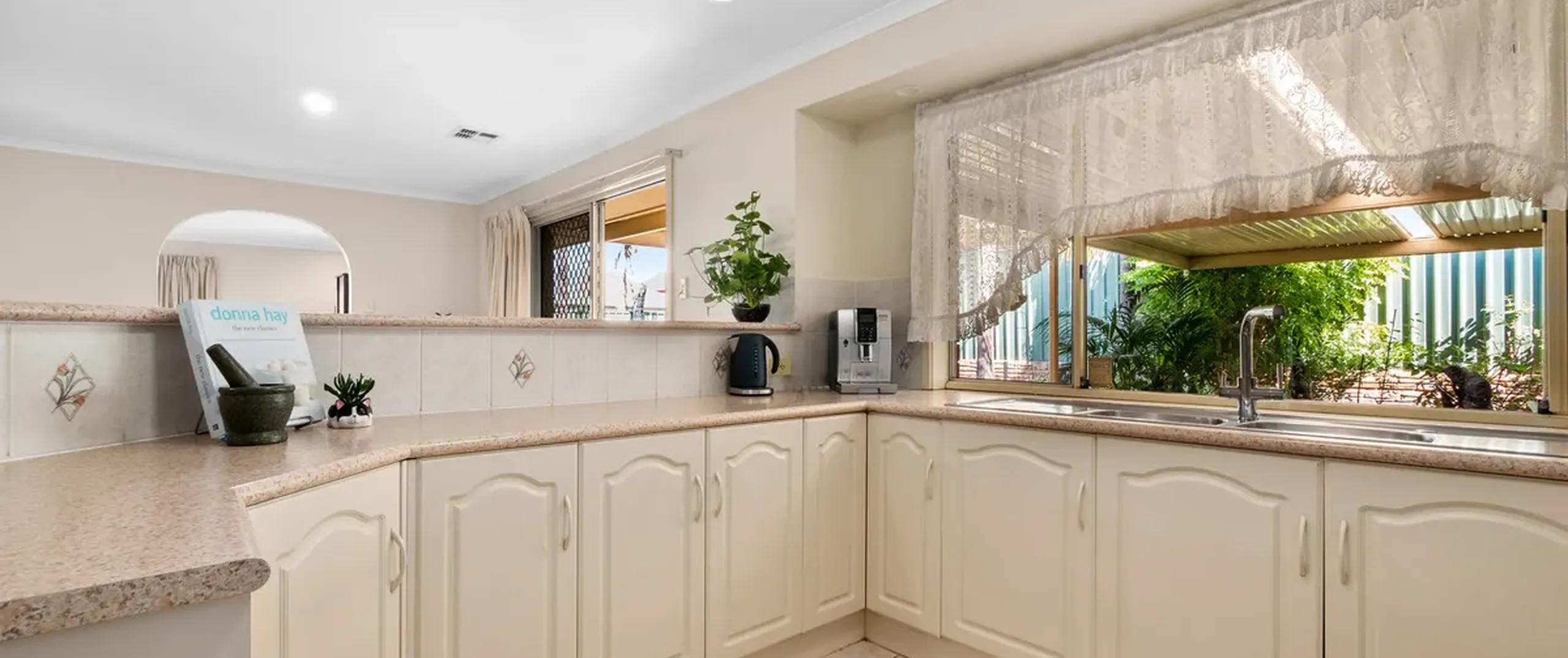 - Timeless kitchen with views over the rear yard and featuring a gas cook top, walk-in pantry and an abundance of storage space