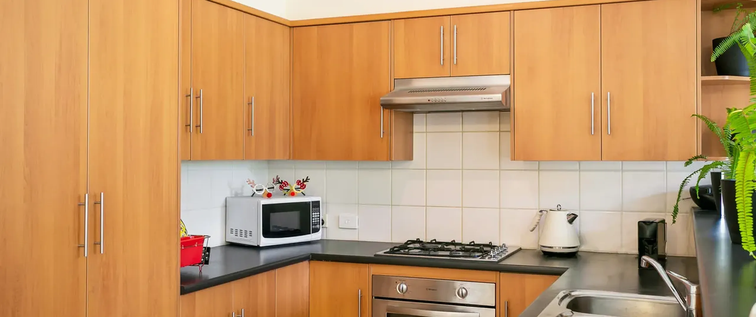 - Well-equipped kitchen with gas cooktop, dishwasher, pantry and complete with ample cupboard space