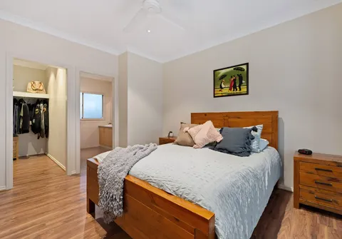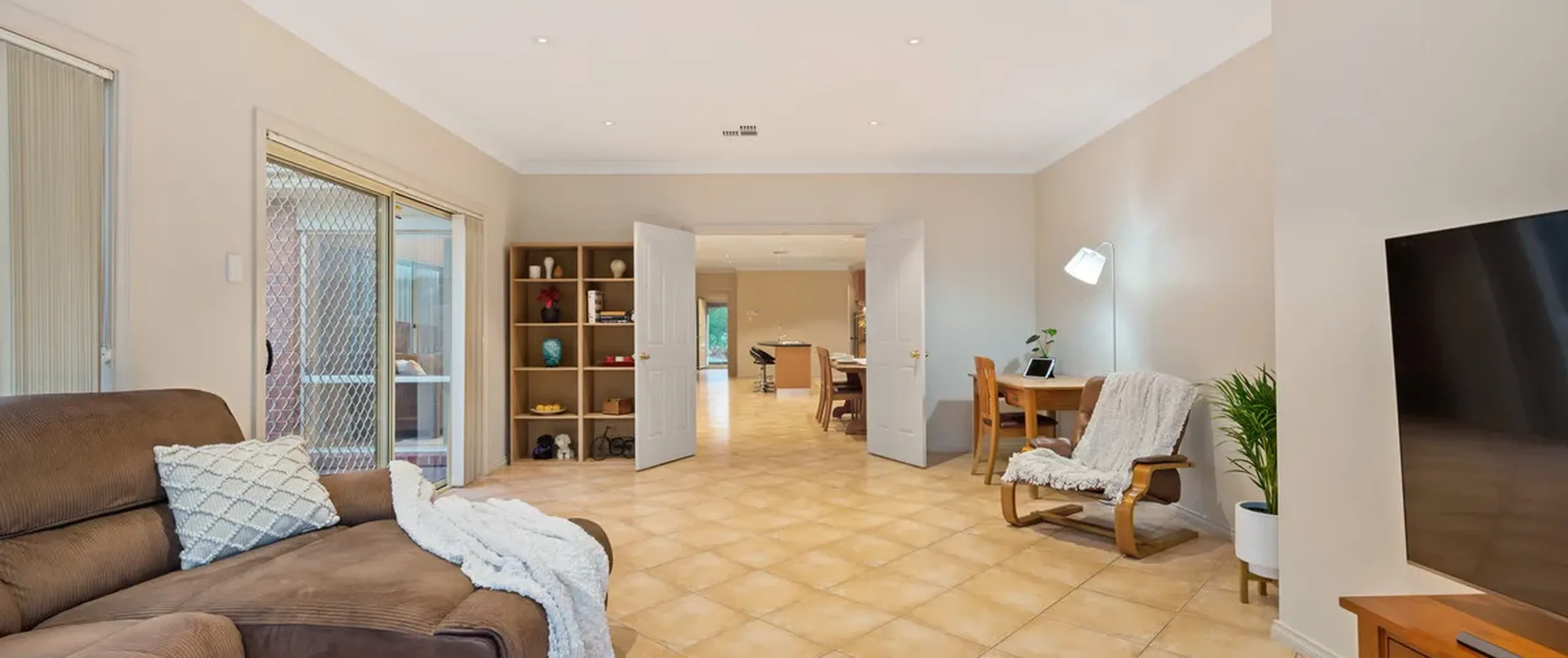 Outdoors, the undercover entertaining area is the perfect setting to share with family and friends, accessed directly from the internal living space. Completing the layout is a double garage with automatic panel lift doors providing drive-through access to store your boat, caravan or trailer.