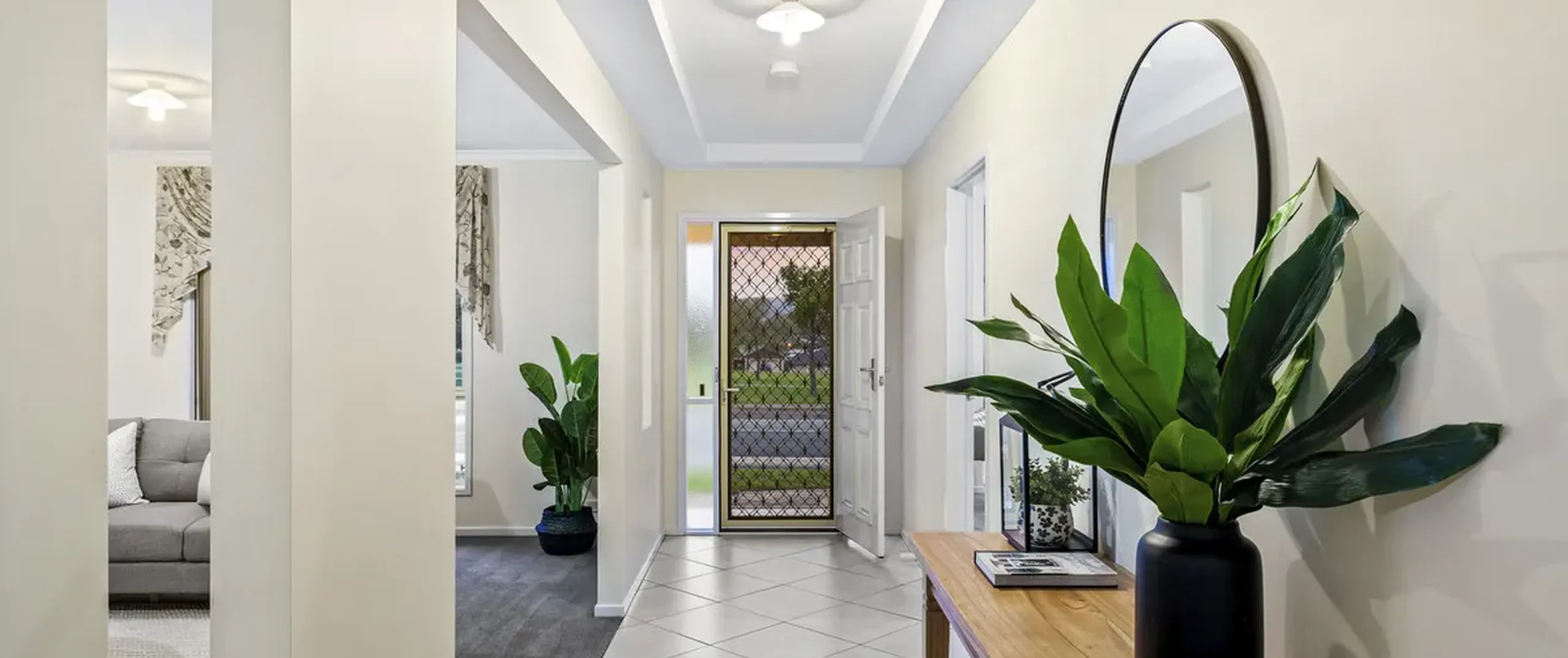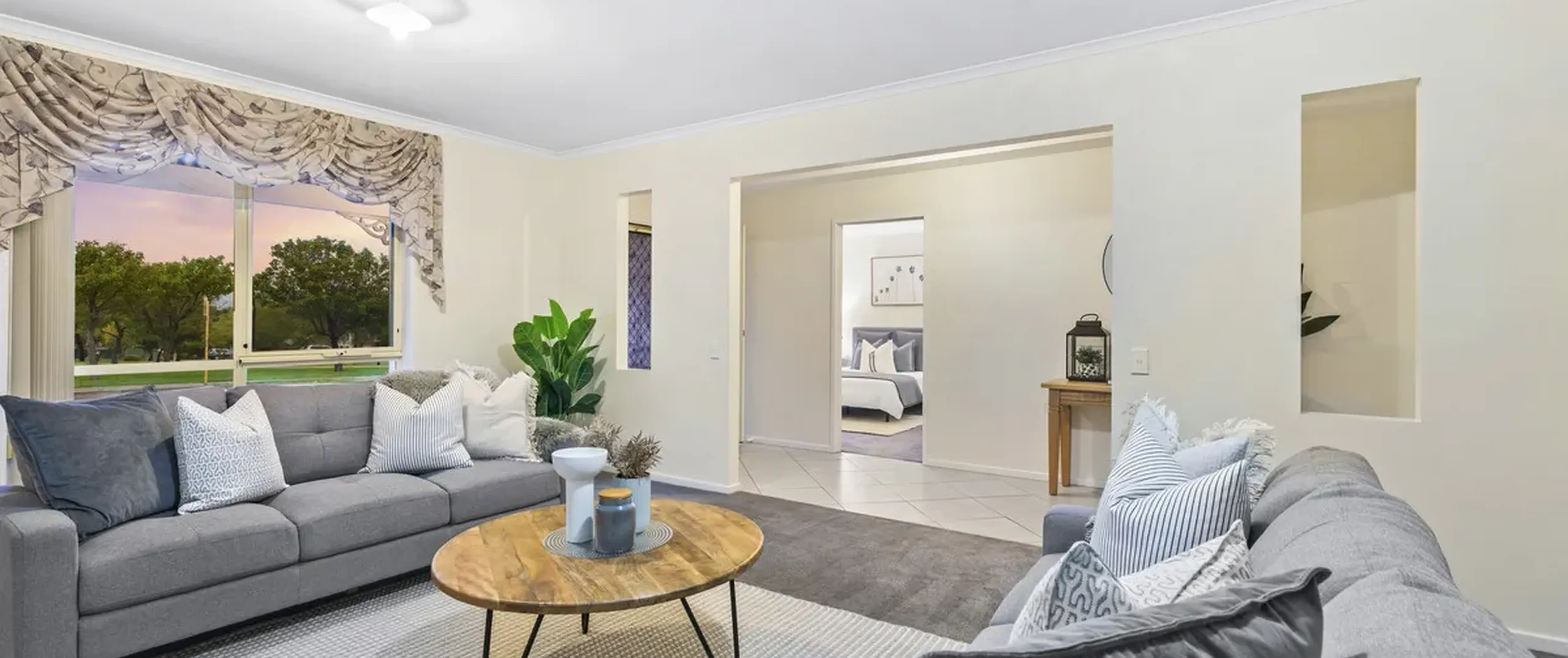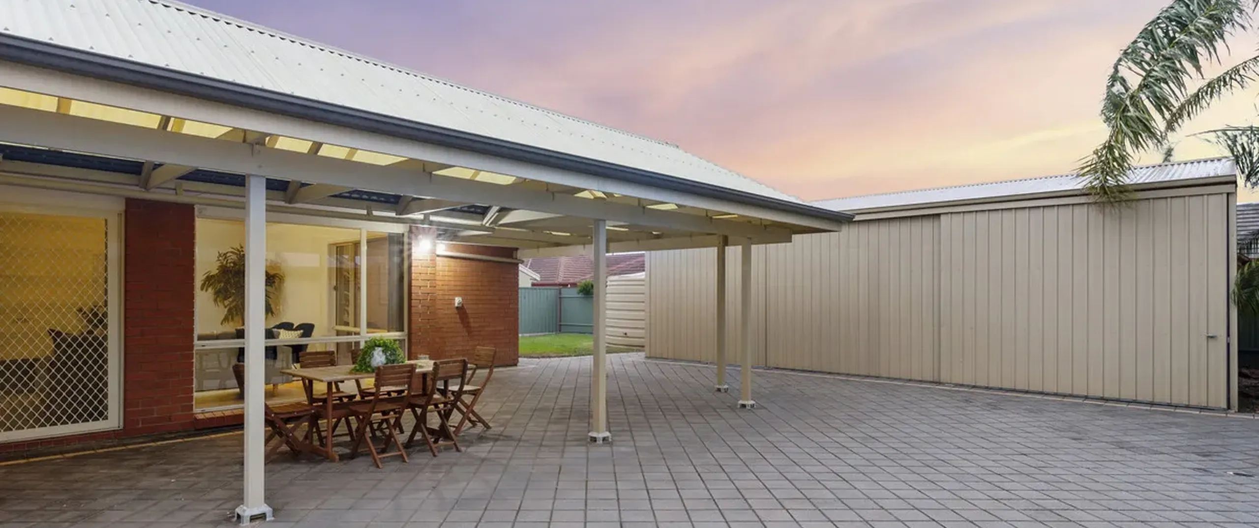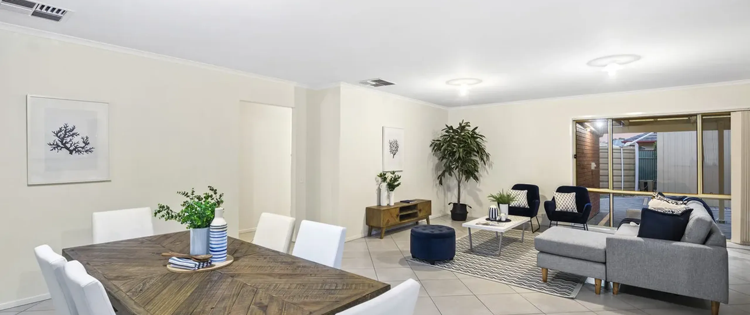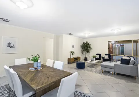 The living and dining room extends to the outdoor entertaining space which boasts a large pitched roof pergola, making for a perfect setting for hosting special occasions with family and friends, framed by an easy-maintenance rear yard.