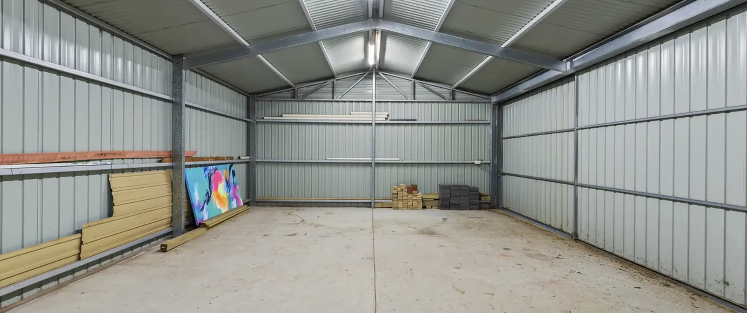 - Double width garage with automatic panel door and both internal and external access via drive through panel lift door
