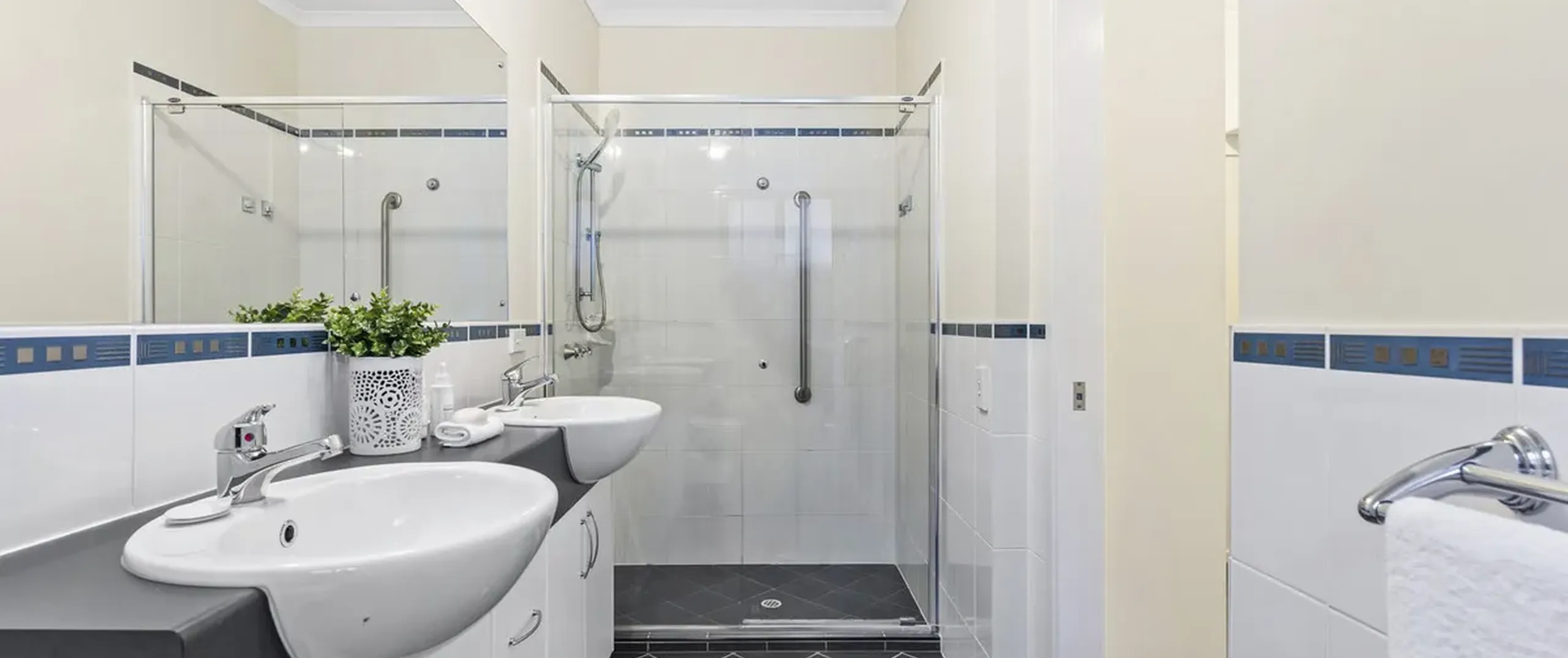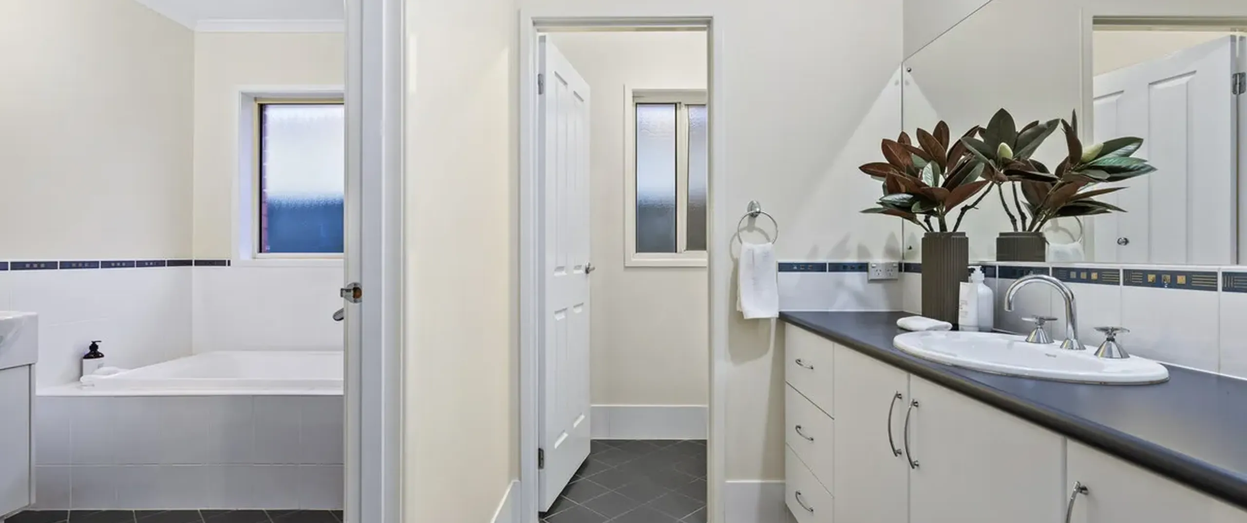 - Glistening 3-way bathroom with bath and shower + separate toilet for convenience