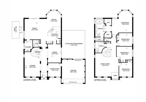The impressive layout on the upper level includes four bedrooms, with the master suite featuring a his and hers walk-in robe, a stunning bay window, and a luxurious ensuite with a spa bath. Completing the upper level are a main bathroom and a large living space.