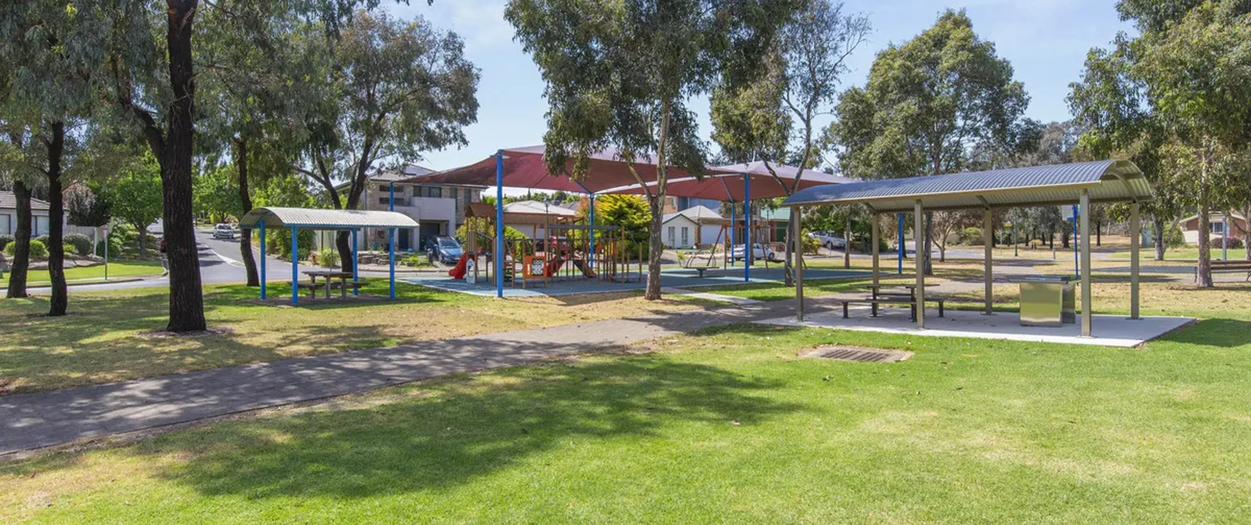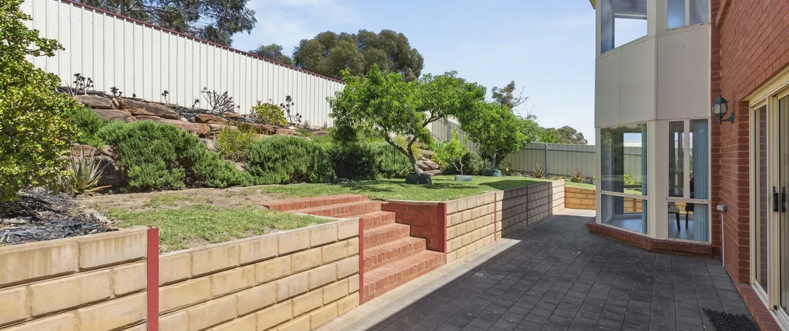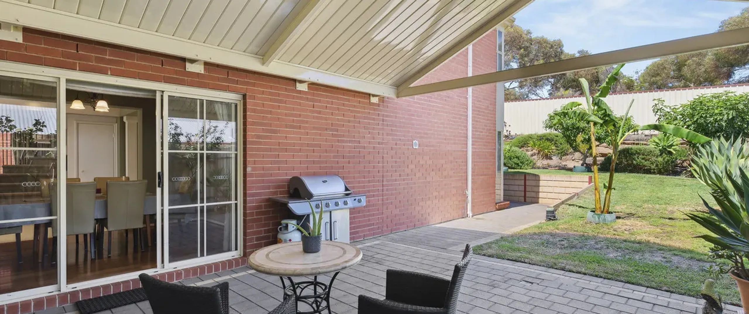 - Outdoor entertaining area with pitched roof pergola