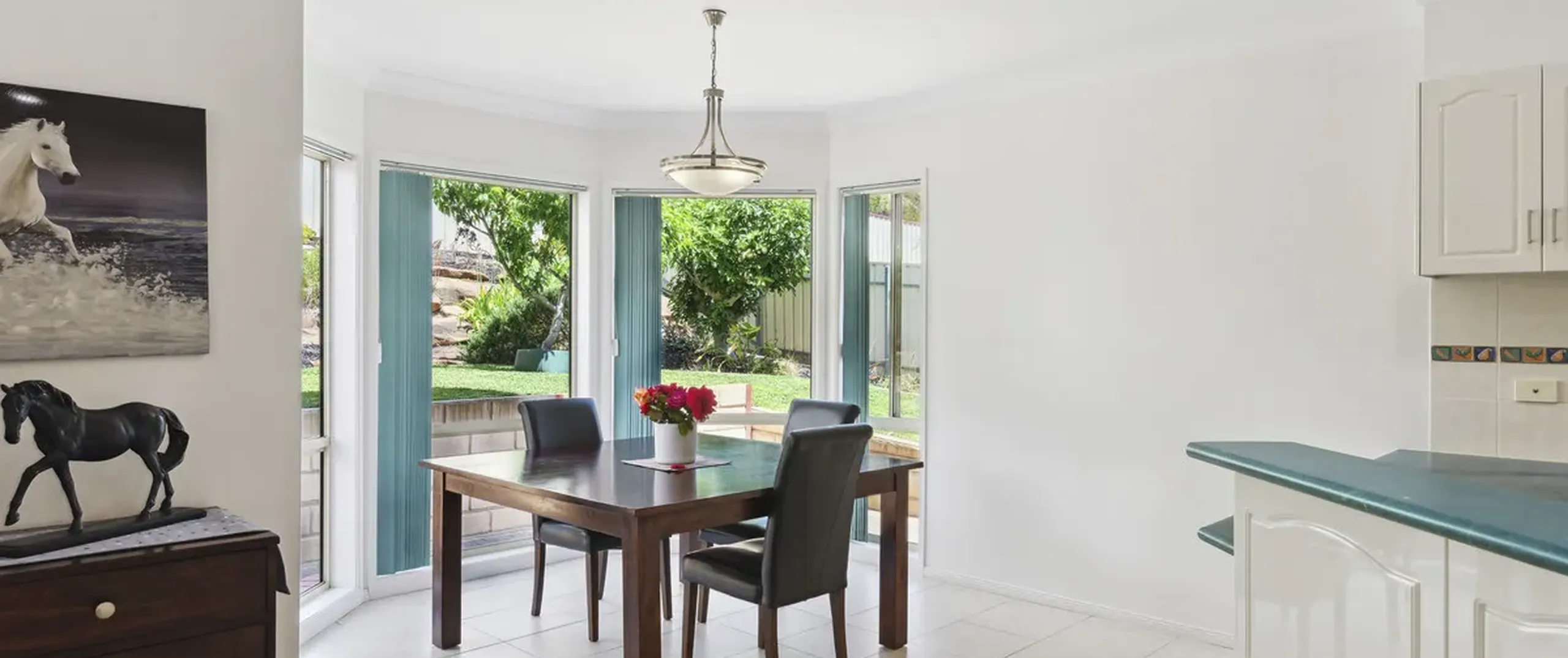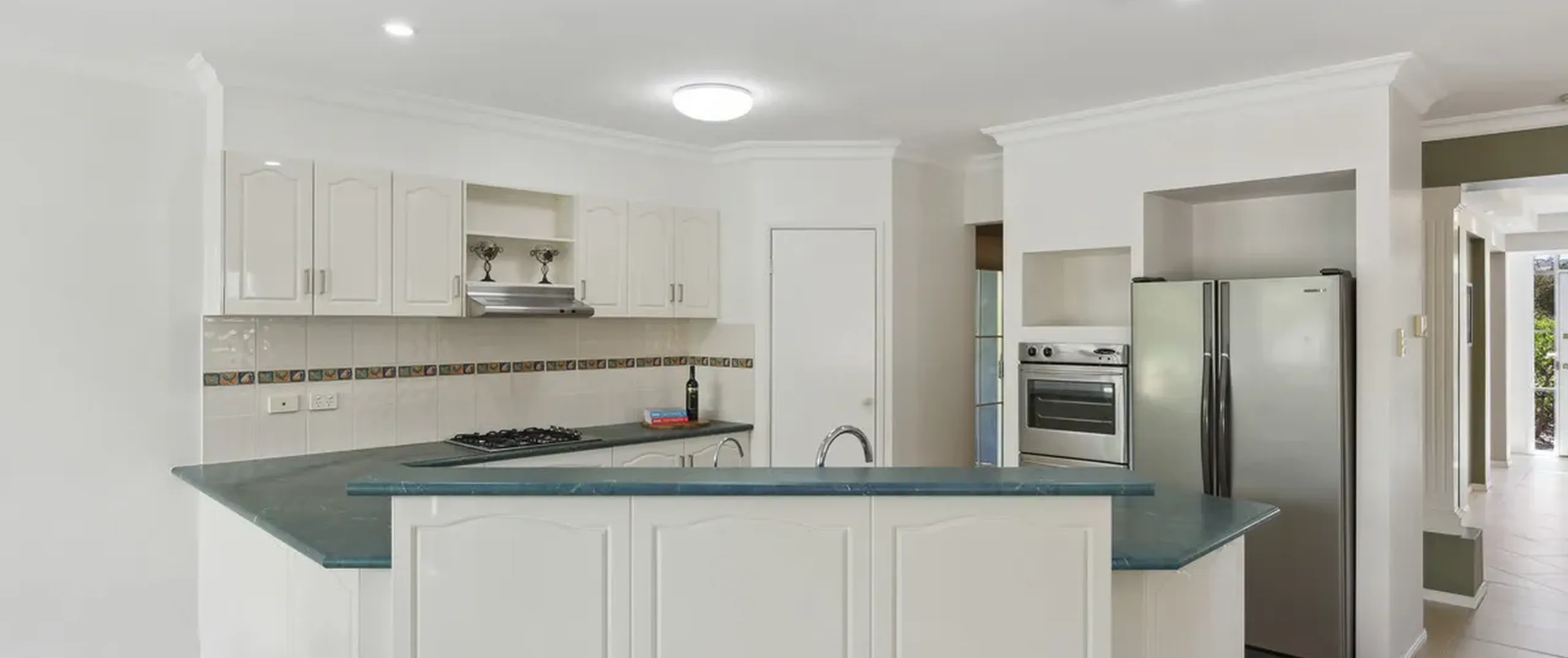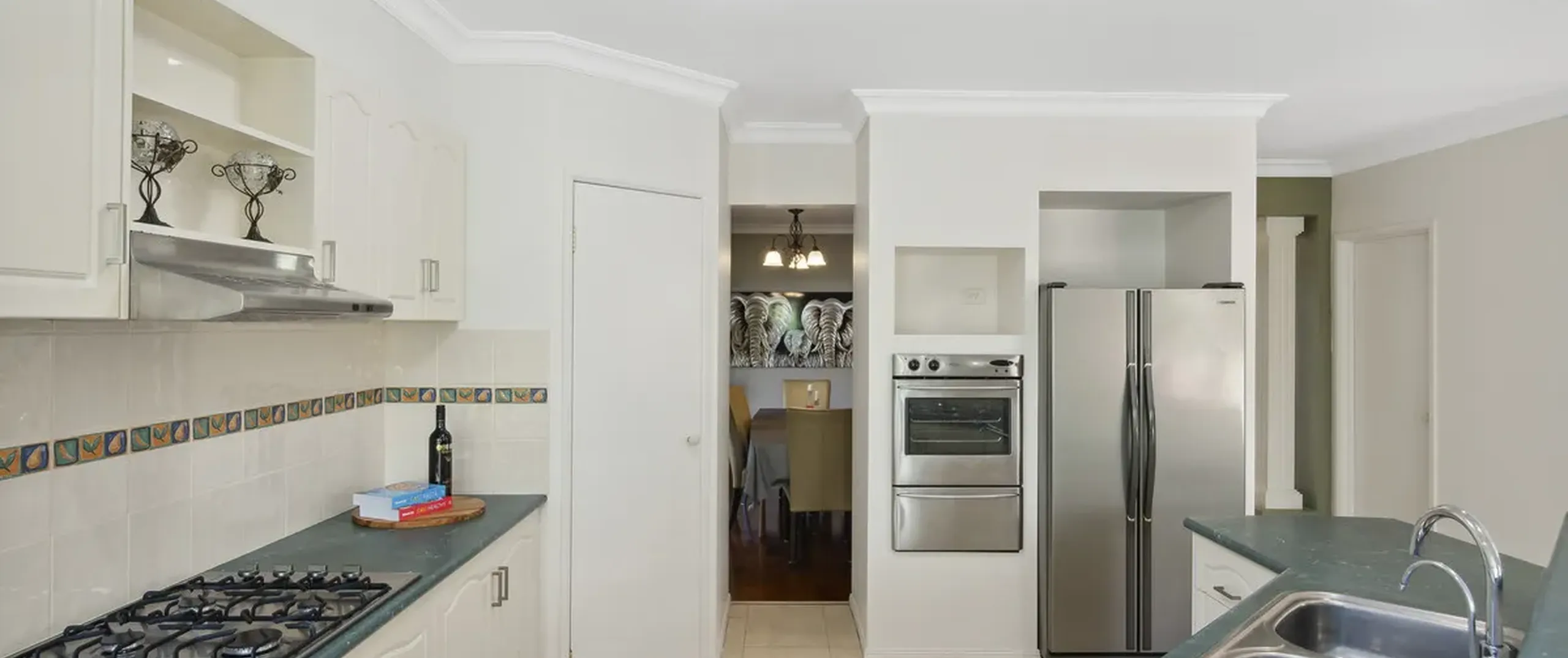 - Immaculate kitchen with a gas cook top, ample cupboard space, sweeping benchtops and pantry