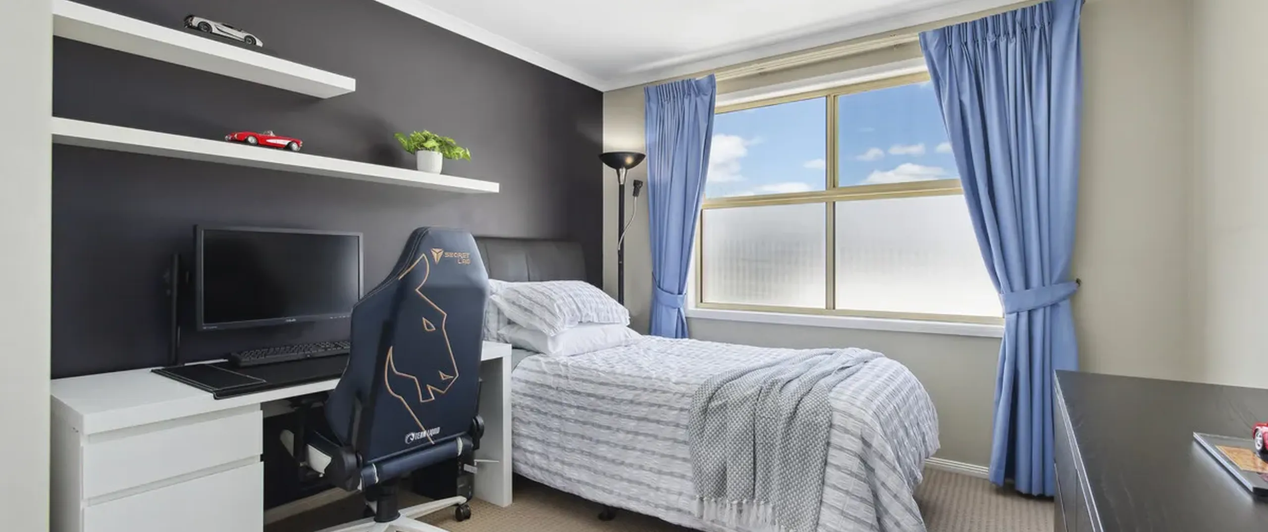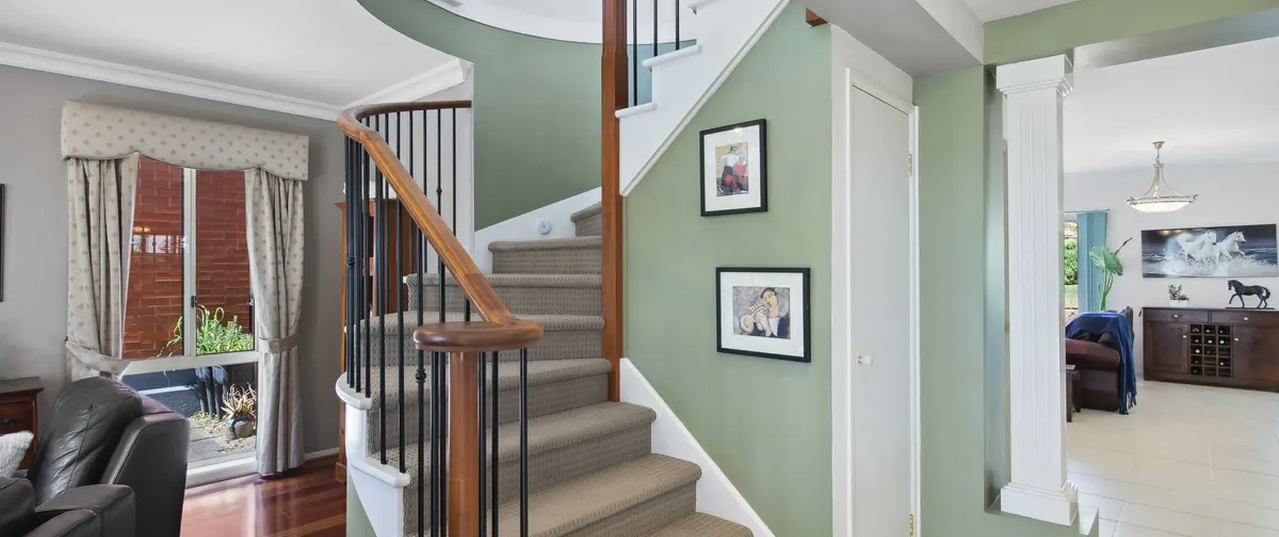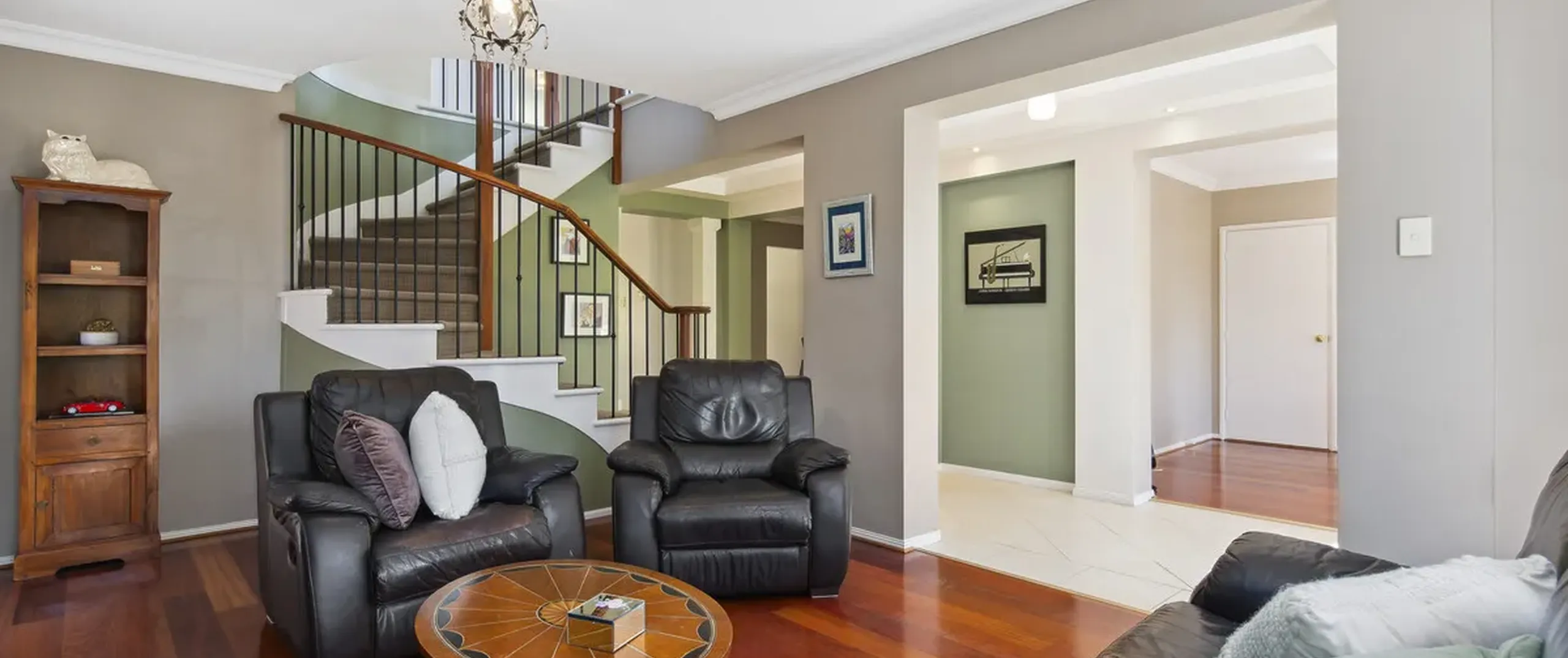 - Immaculate kitchen with a gas cook top, ample cupboard space, sweeping benchtops and pantry