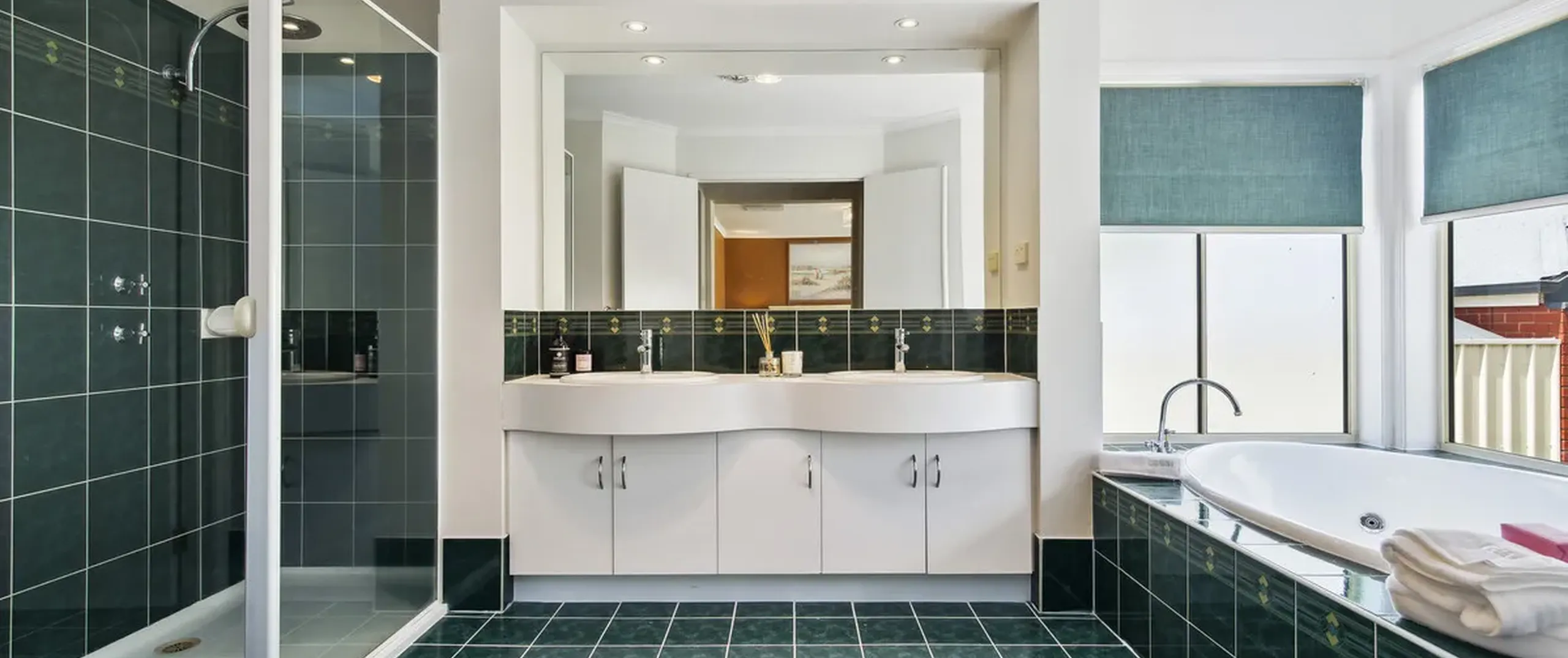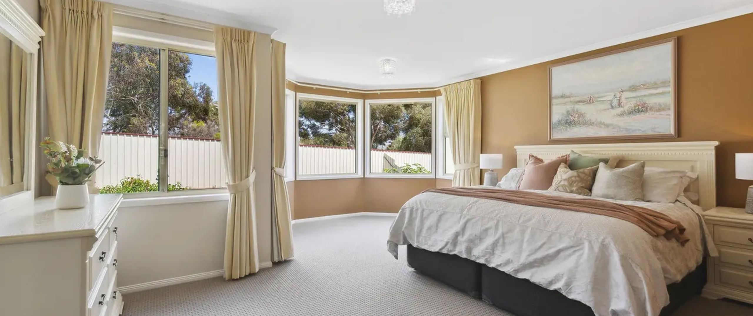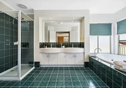 - Enormous master bedroom with his and her walk-in robes, large ensuite with his and her basin, spa bath and shower, complete with a beautiful bay window