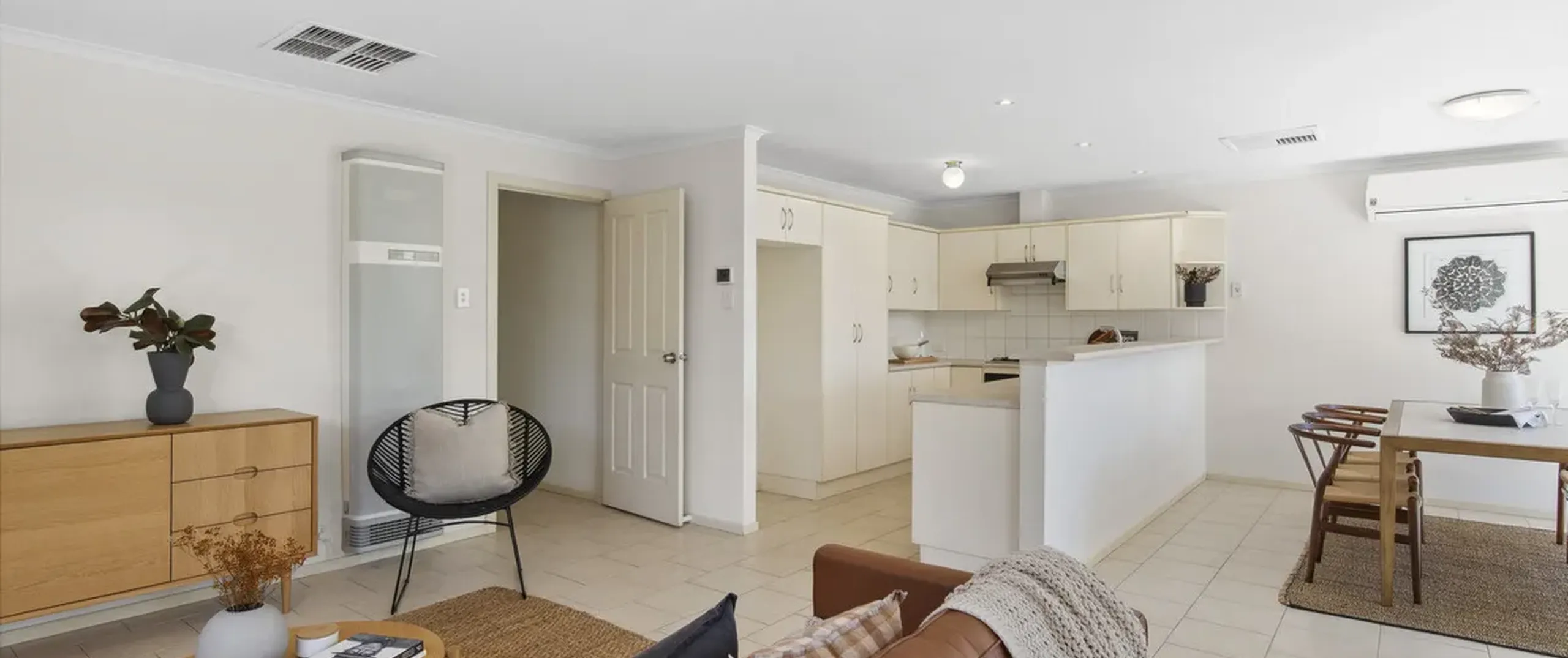 - Open living, dining and kitchen area complimented by a gas wall-furnace heater and split system air-conditioning for complete climate control