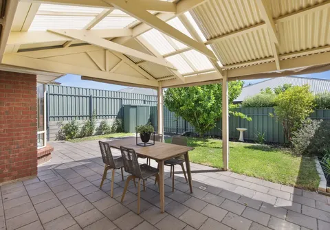 Venture outdoors to discover a captivating paved courtyard adorned with a charming pitched roof pergola and low-maintenance garden—a serene oasis perfect for indulging in morning coffees or entertaining loved ones.