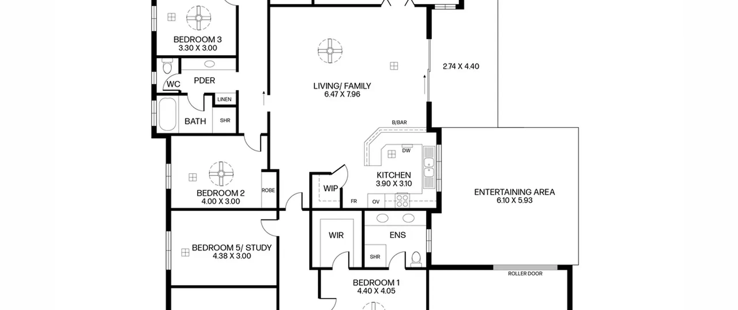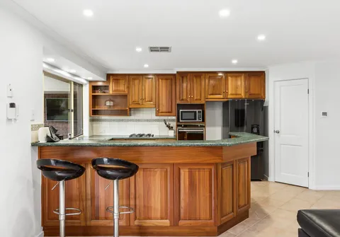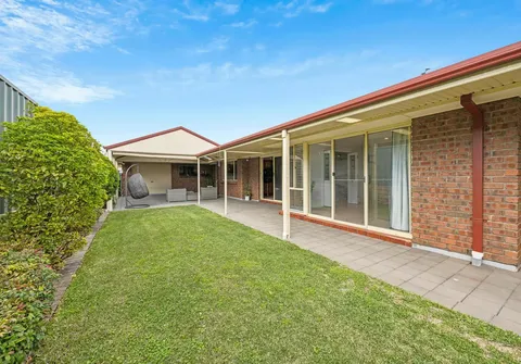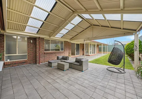 The practical layout includes four generously sized bedrooms, with the option for a fifth bedroom or home office, ensuring ample space for a growing family. Outside, the expansive covered entertaining area, complemented by a charming pitched-roof pergola, provides the perfect setting for gatherings while the children play in the spacious yard.