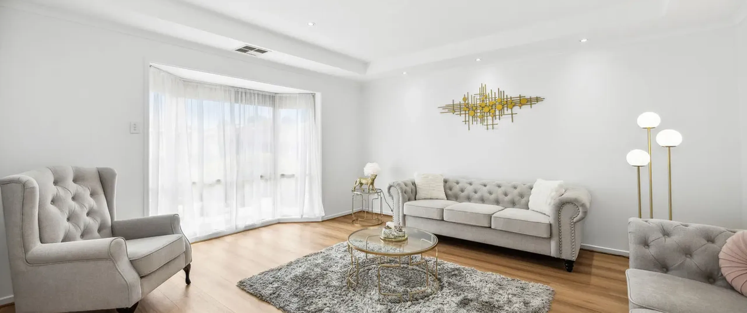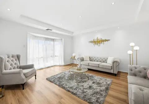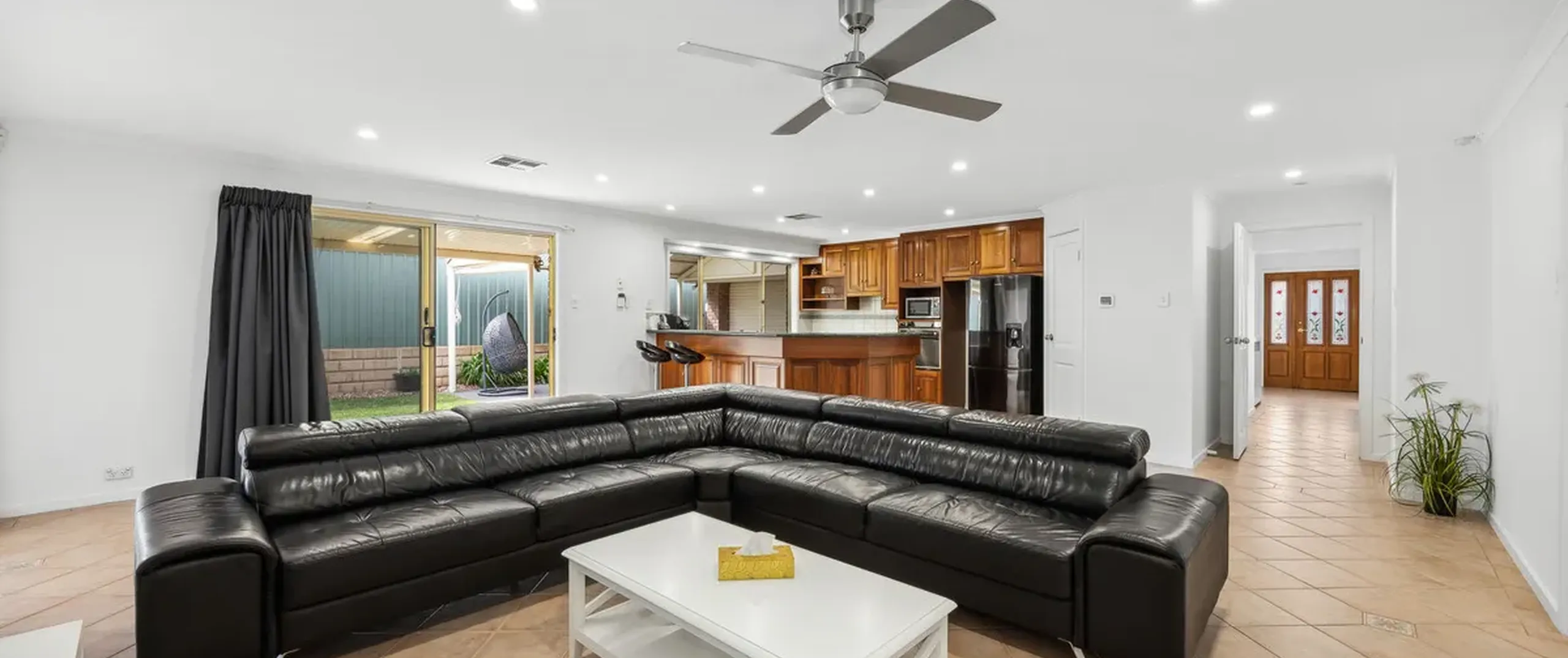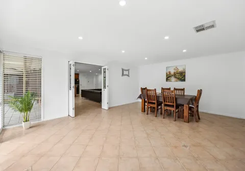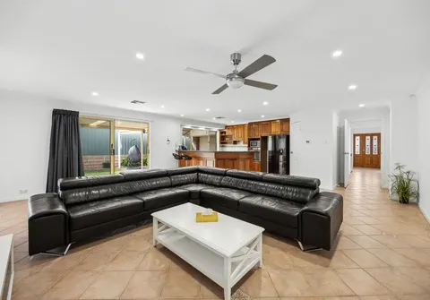 The wide-set entrance welcomes you with crisp white walls and a recessed ceiling, leading into a charming lounge room with on-trend flooring. The spacious kitchen, dining, and family area offers plenty of room for the whole family, with the addition of a rumpus room for extra versatility.
