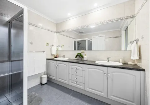 - Master bedroom with ceiling fan, walk-in robe, and ensuite featuring a double basin