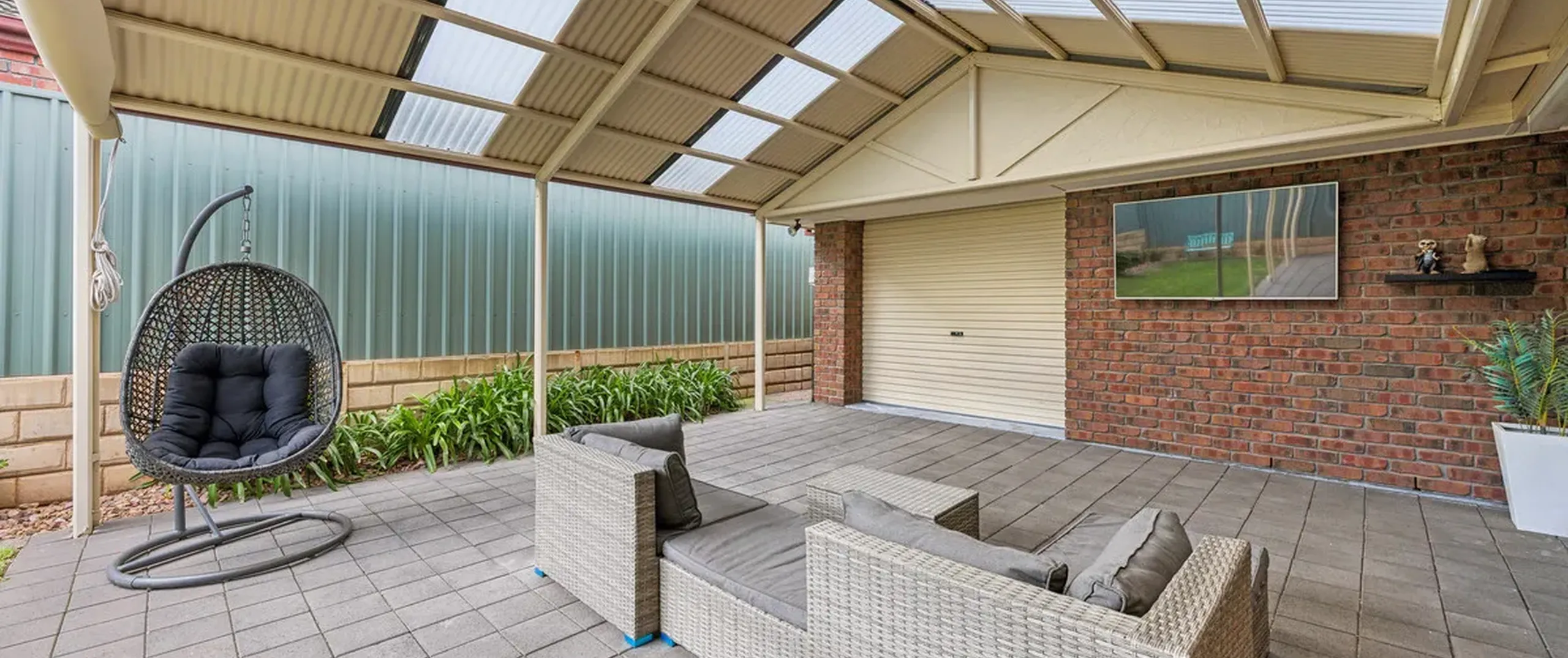 - Spacious pitched-roof pergola, perfect for outdoor entertaining