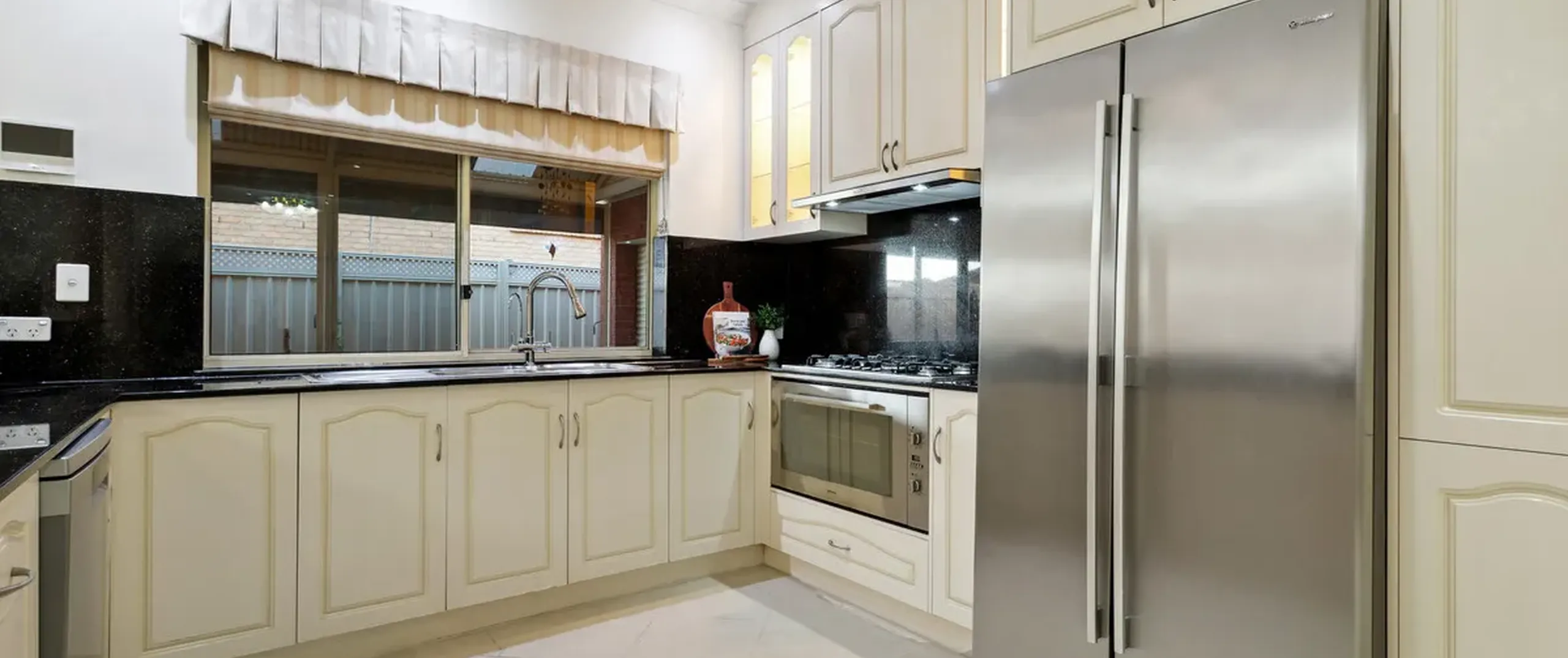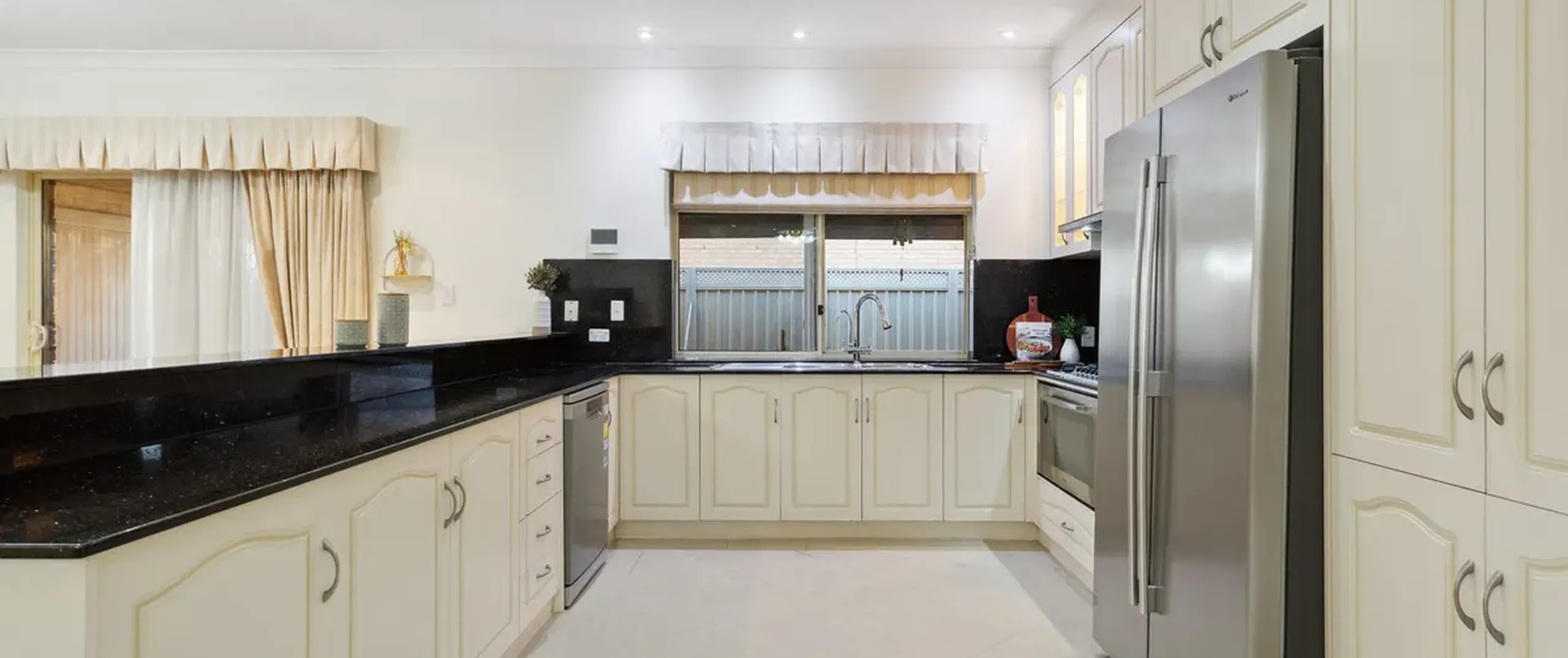 - Immaculate kitchen with gas cooktop, ample cupboard space, expansive benchtops, and pantry