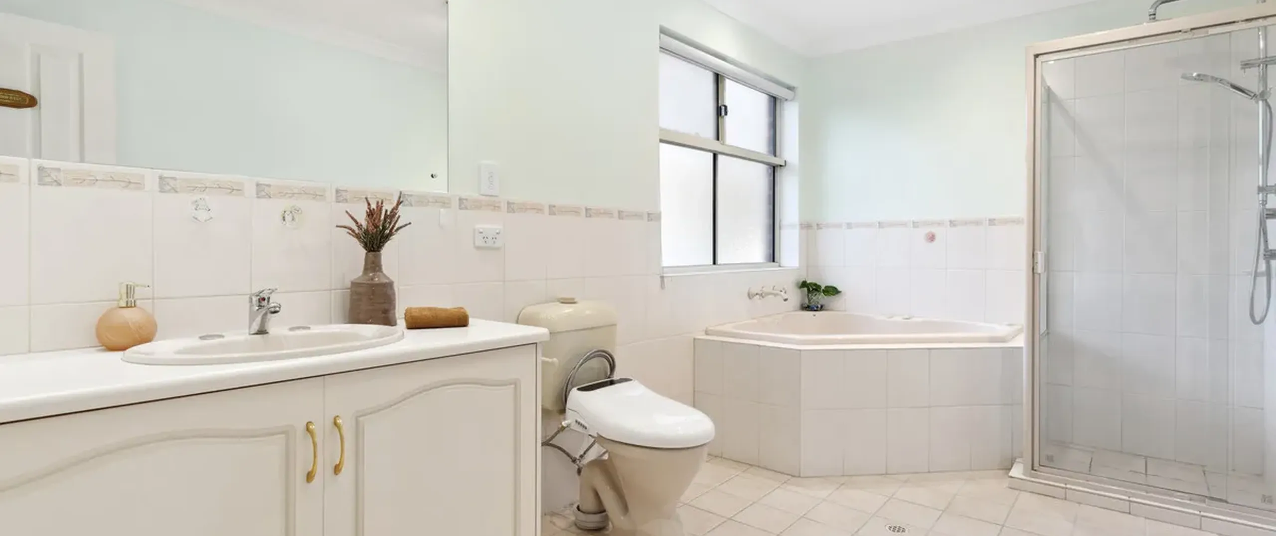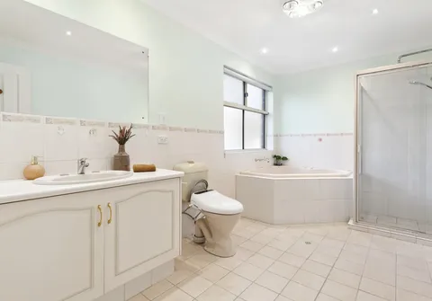 - Main bathroom with bathtub, shower, and separate toilet for added convenience