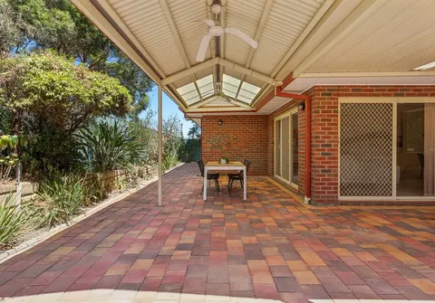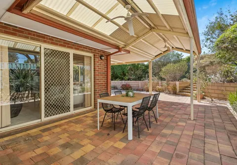 Step outside to the outdoor entertaining area, accessed seamlessly from the living room, where you’ll find a pitched roof pergola with ceiling fans, surrounded by a low-maintenance yard. It’s ideal for hosting guests or unwinding in comfort. Additionally, there’s a second louvered pergola, directly accessed from the laundry, offering a private sanctuary for moments of peace and relaxation.