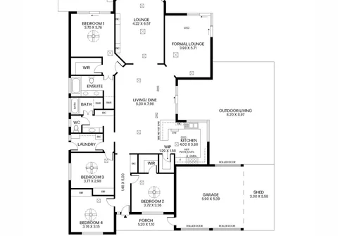 - Double garage with roller doors, 15 Amp electrical outlet, direct access to the front porch and roller door access to the outdoor living