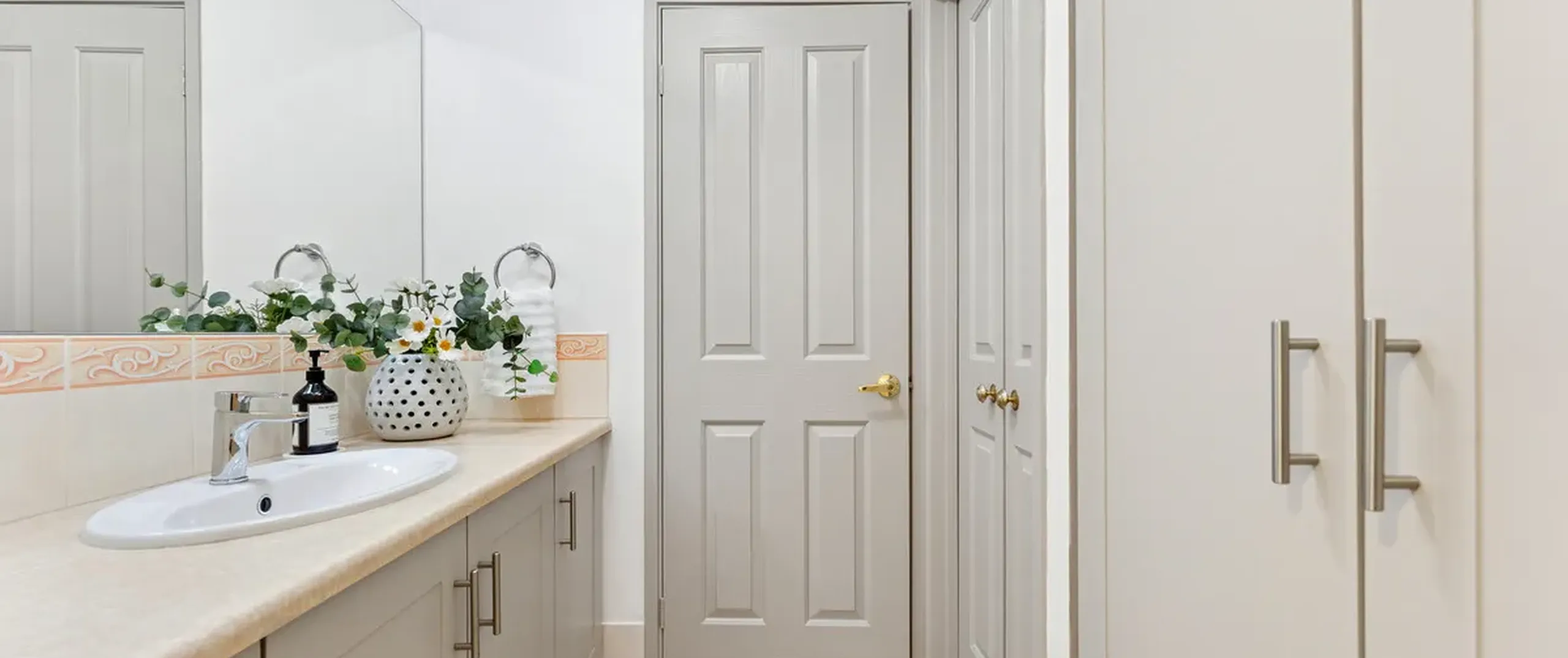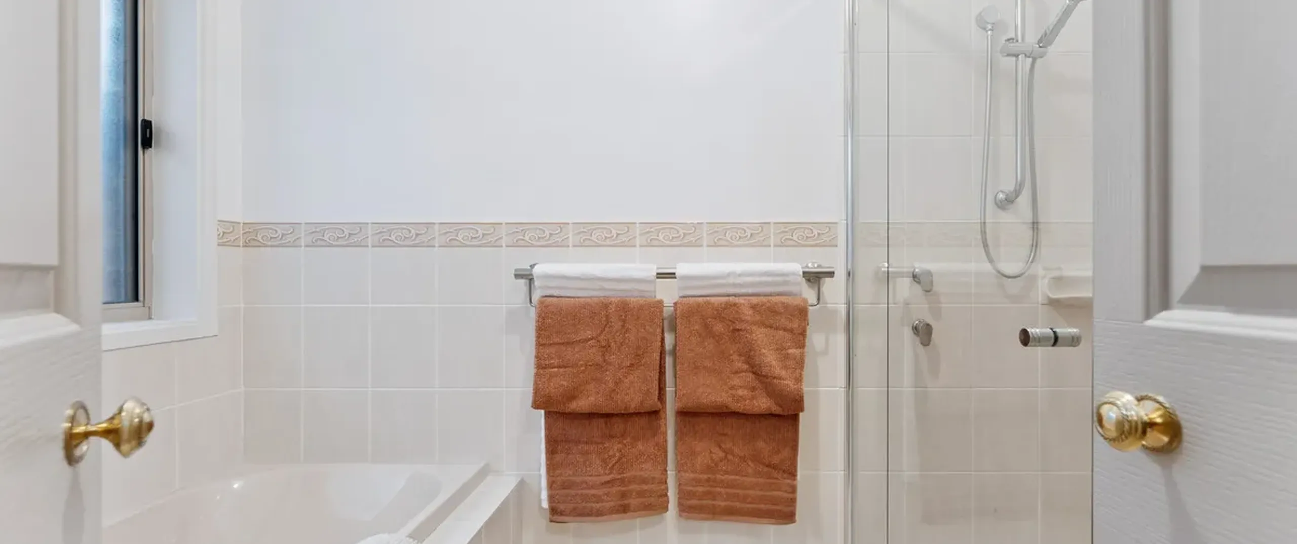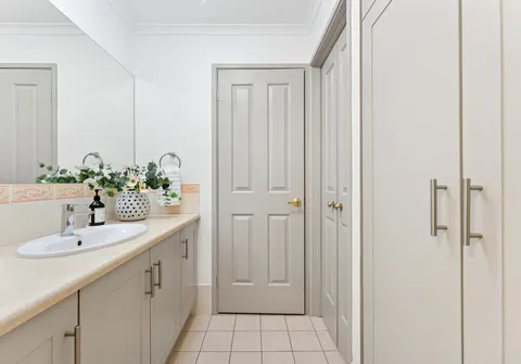 - Main bathroom with separate bath and shower, separate toilet and built-in cupboard