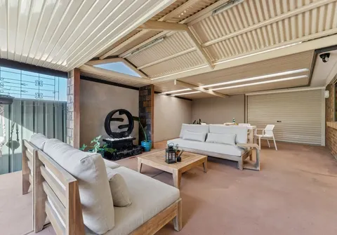 Stepping out to the rear yard, you'll find a variety of outdoor spaces thoughtfully designed for family enjoyment and entertaining. The highlight is the spacious undercover entertaining area featuring a pitched roof, making it ideal for gatherings in any season. Adding to the appeal, a private deck off the master bedroom provides a peaceful retreat—perfect for a morning coffee or relaxation in the afternoon sun. The garden is completed by low-maintenance garden beds and a lawned area for the kids and pets to enjoy.