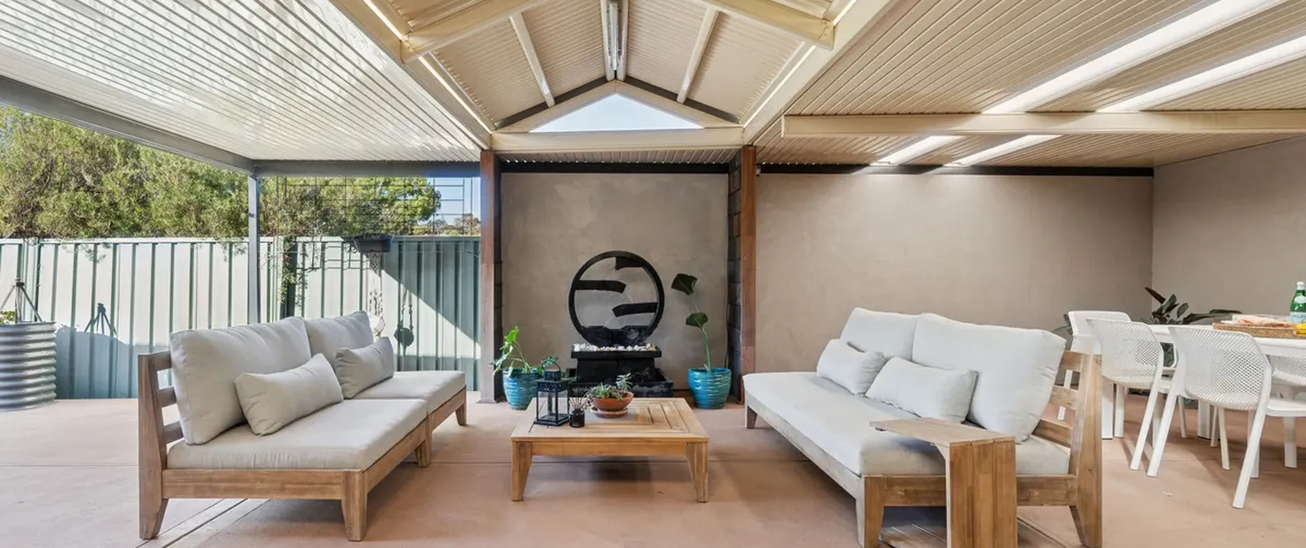 - Expansive outdoor living space with pitched roof perfect for entertaining or relaxing in comfort