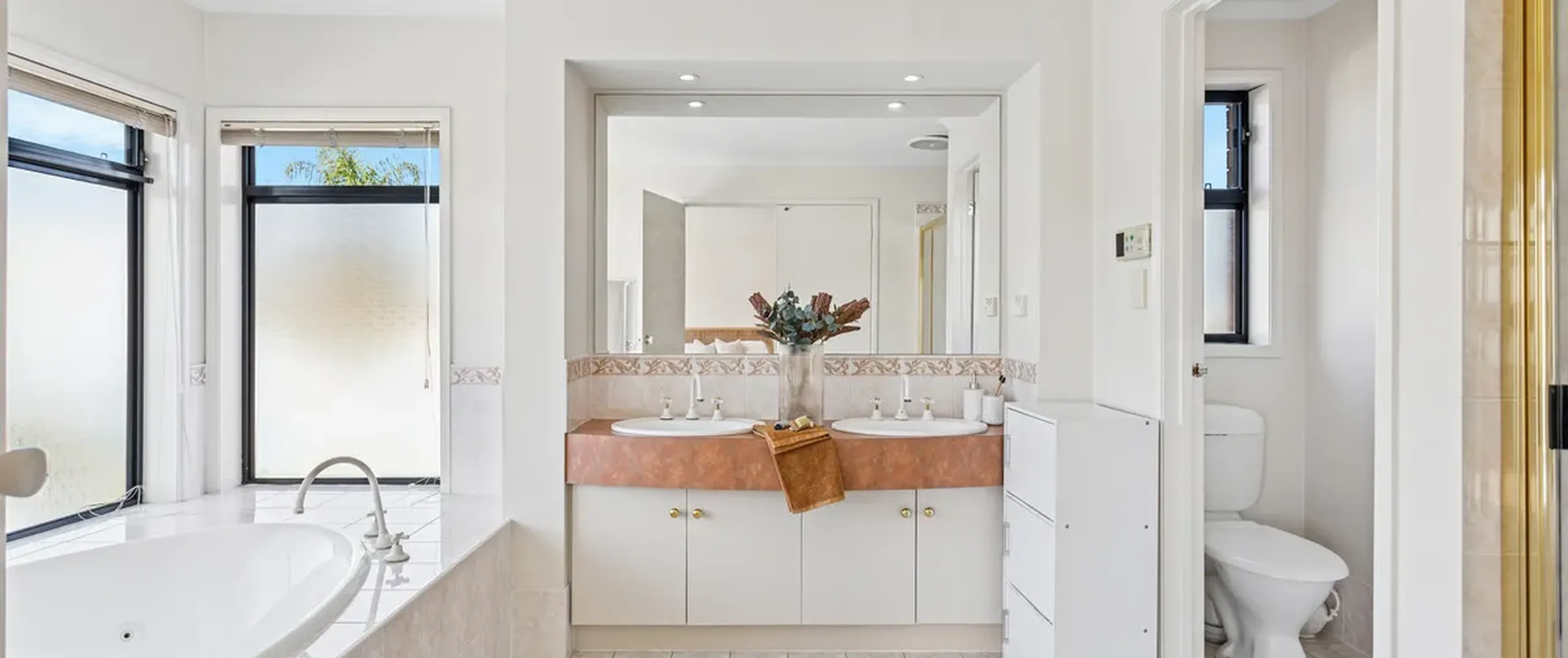- Expansive and light-drenched master suite with spacious walk-in robe and private ensuite with two basins, a spa bath, a separate toilet and a separate shower