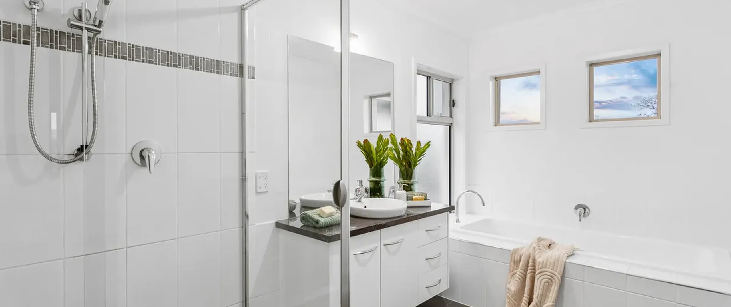 - Master suite with front aspect, walk-in robe and ensuite with spa bath, dual vanity and views