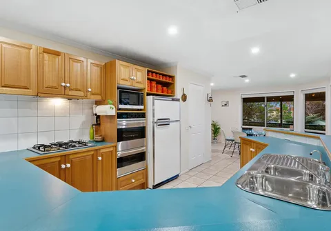 - Spacious open plan kitchen and family area with dining adjacent, electric blinds, LED downlights and sliding doors opening to the outdoor entertaining and verandah