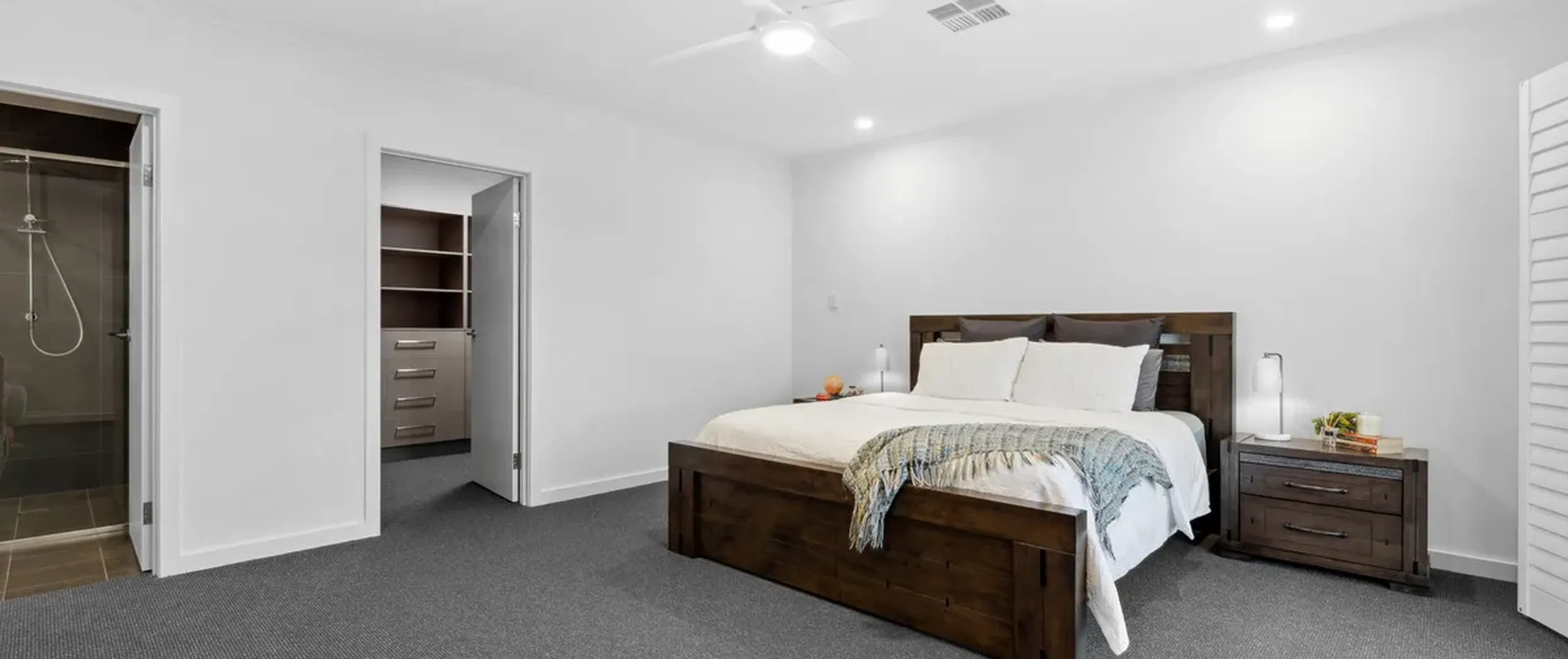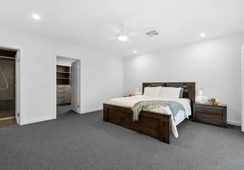 - Expansive master bedroom with a ceiling fan, large dressing room, ensuite featuring his and hers basins and French doors opening to the generous private balcony