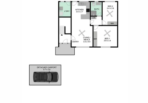 - Two bedrooms both complete with ceiling fans and built-in robes