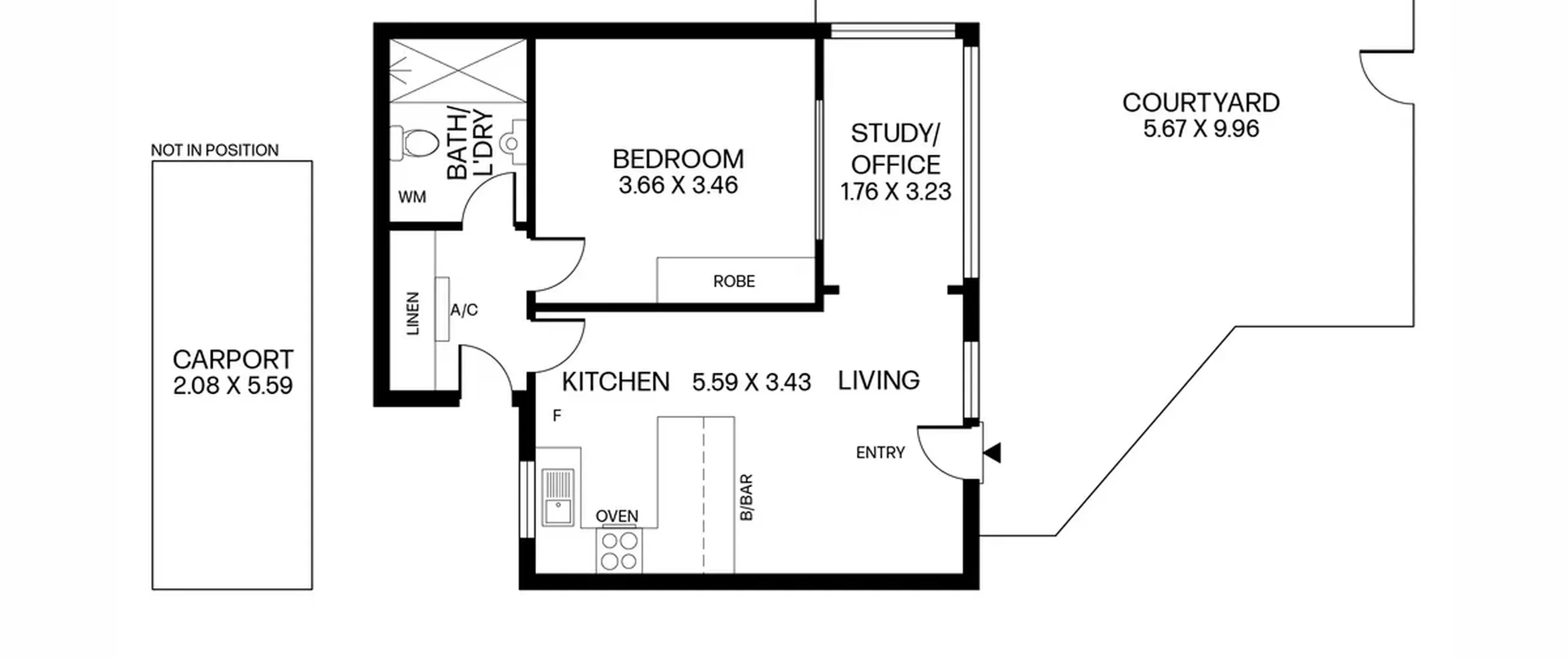 - Bathroom includes a bath/shower and built-in laundry facilities