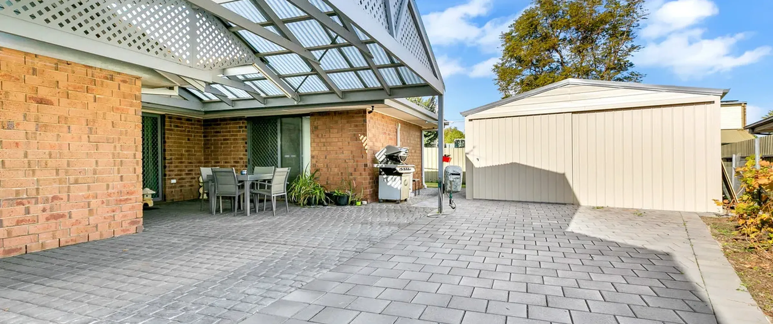 - Fantastic, paved outdoor entertaining area with pitched pergola