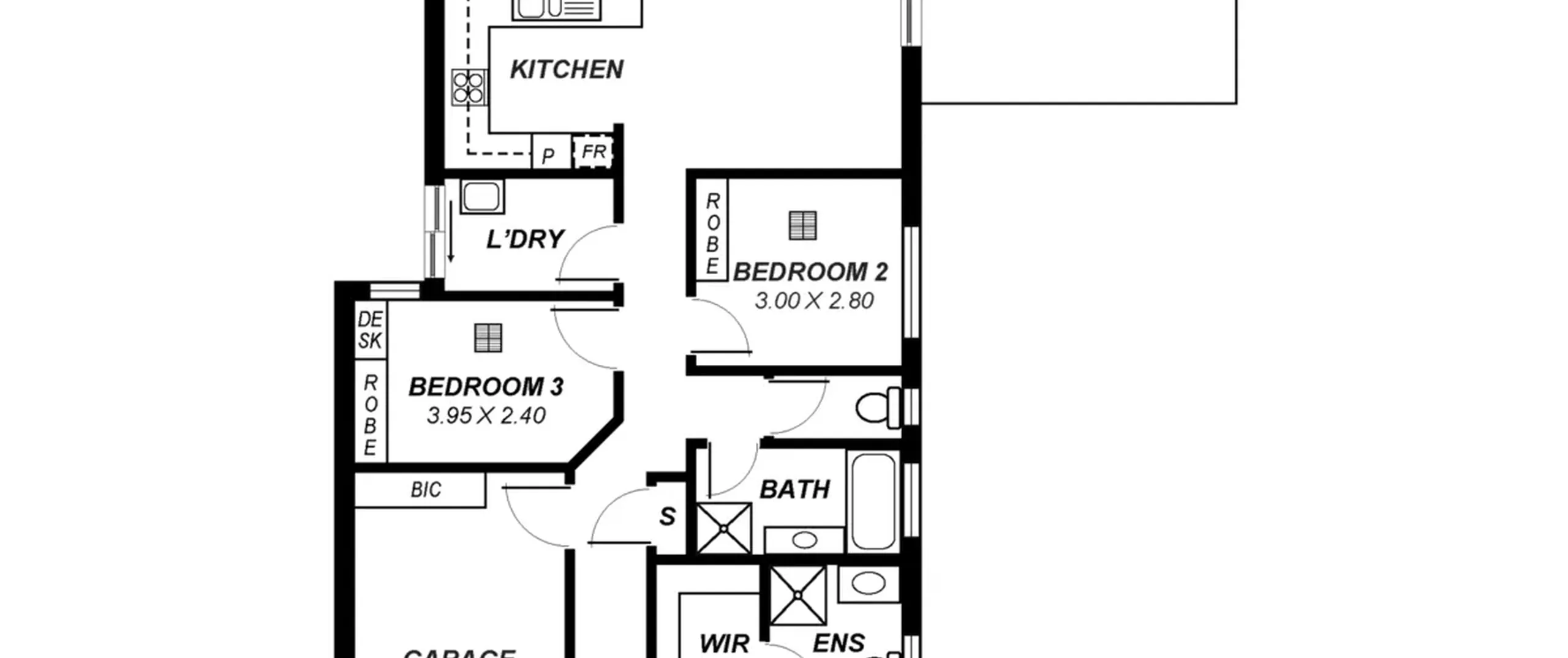 - Spacious bedrooms 2 and 3, both with built in robes, bedroom 3 with built-in desk