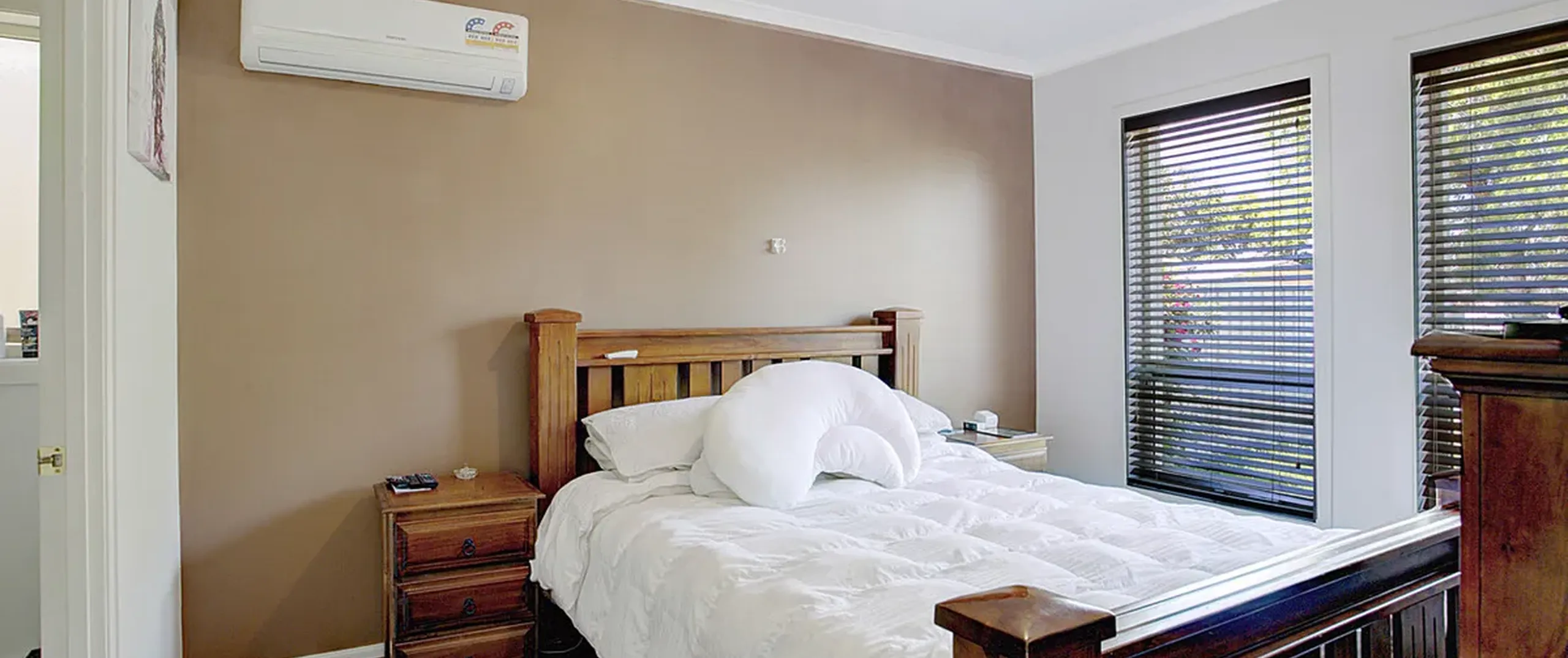 - Master bedroom with split system air-conditioner, walk-in robe and ensuite