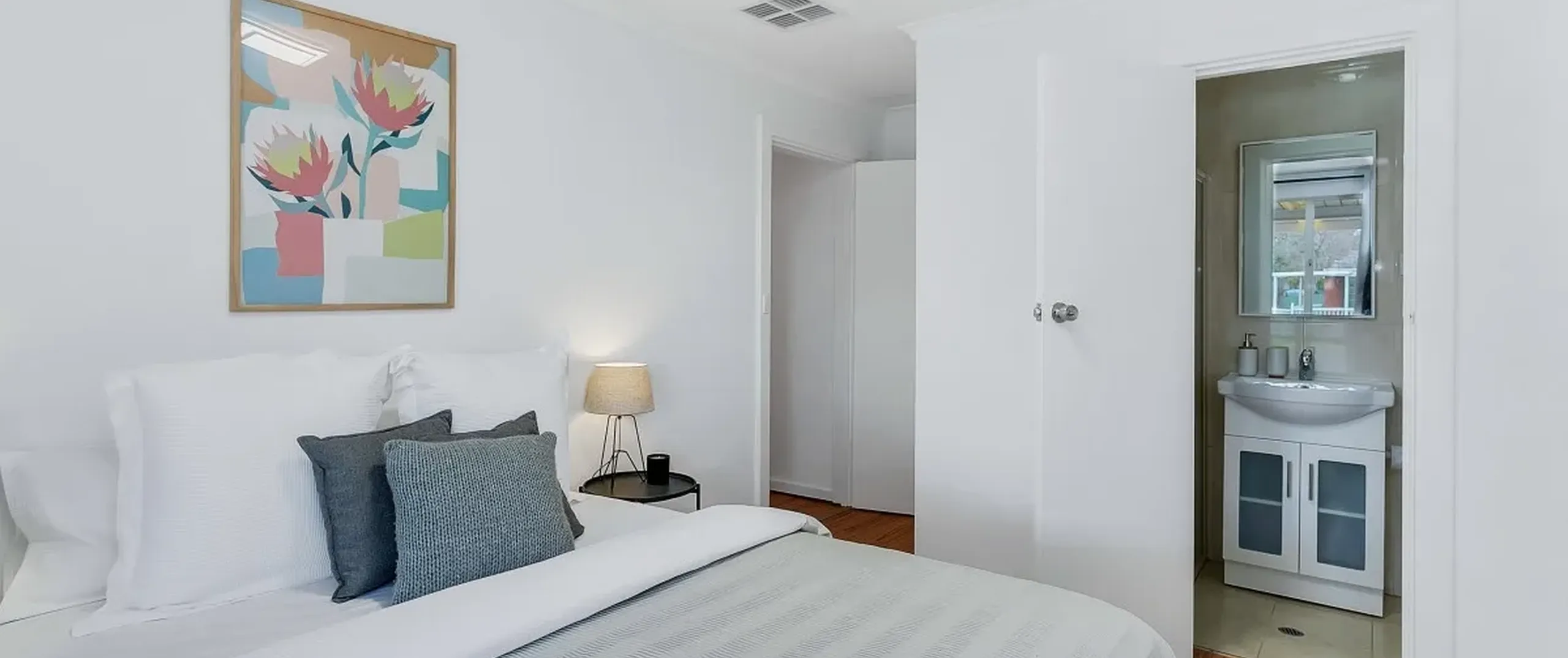 - Spacious master bedroom with immaculate ensuite with floor-to-ceiling tiles and built-in robe and dresser