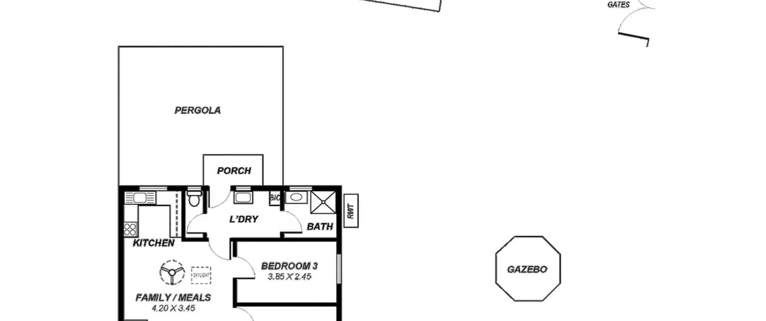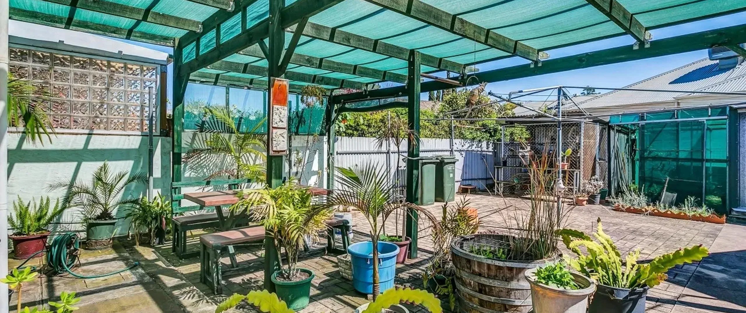 - Paved rear yard with gazebo, garden sheds, aviary and access from side street