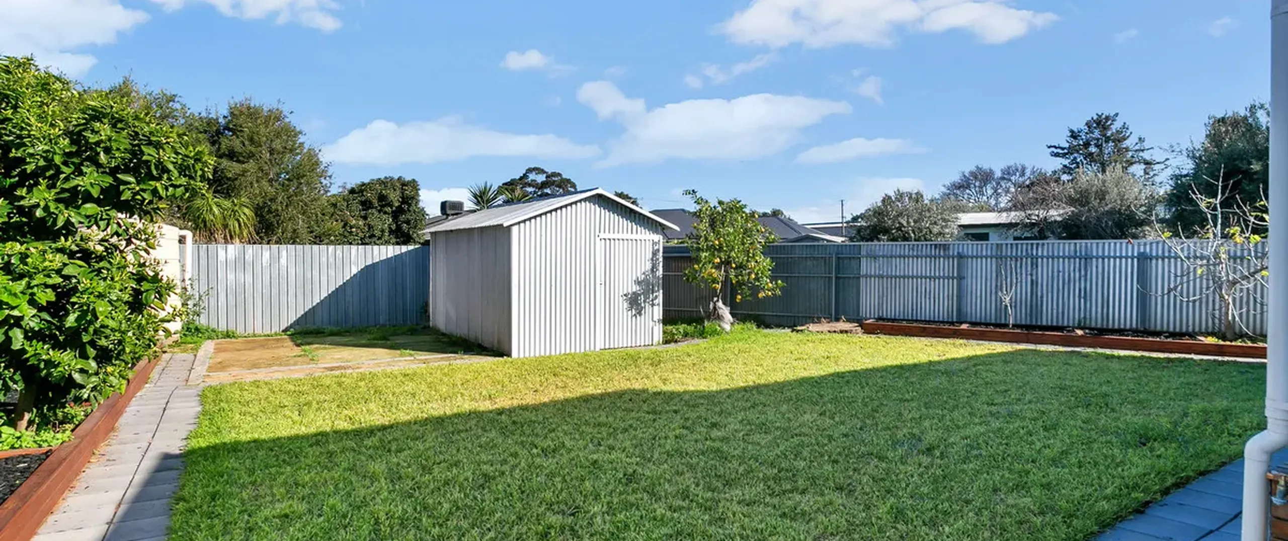 - Large, fully fenced rear yard with garden shed and rainwater tank