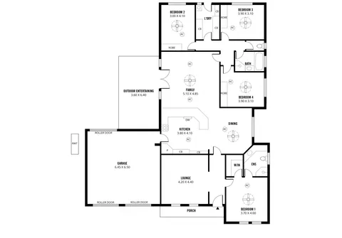 - Double garage with roller doors, direct internal entry and roller door access to rear