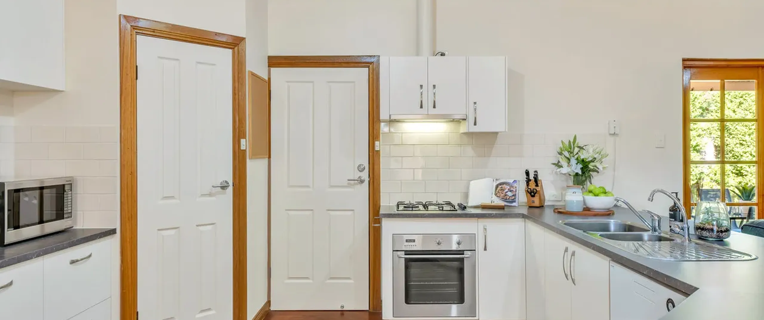 - Kitchen with dishwasher, gas cooktop and ample bench and cupboard space