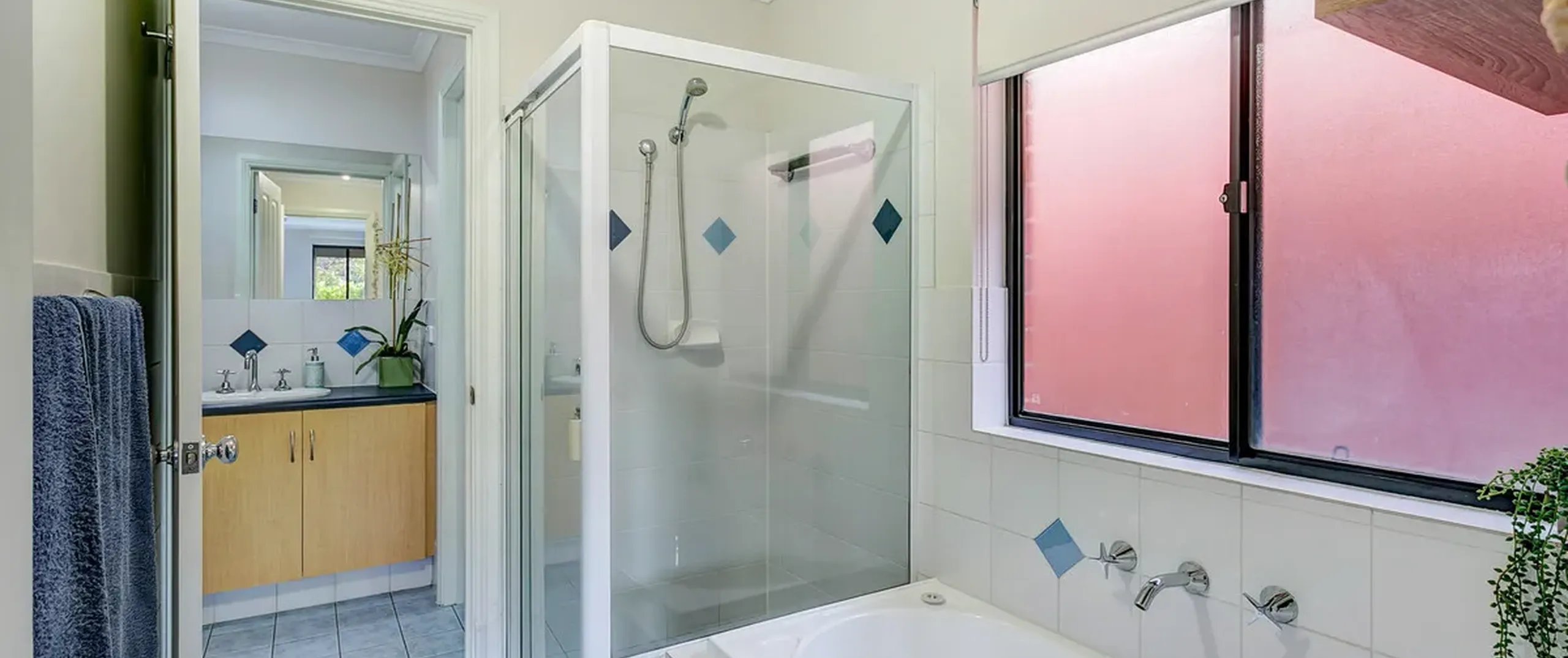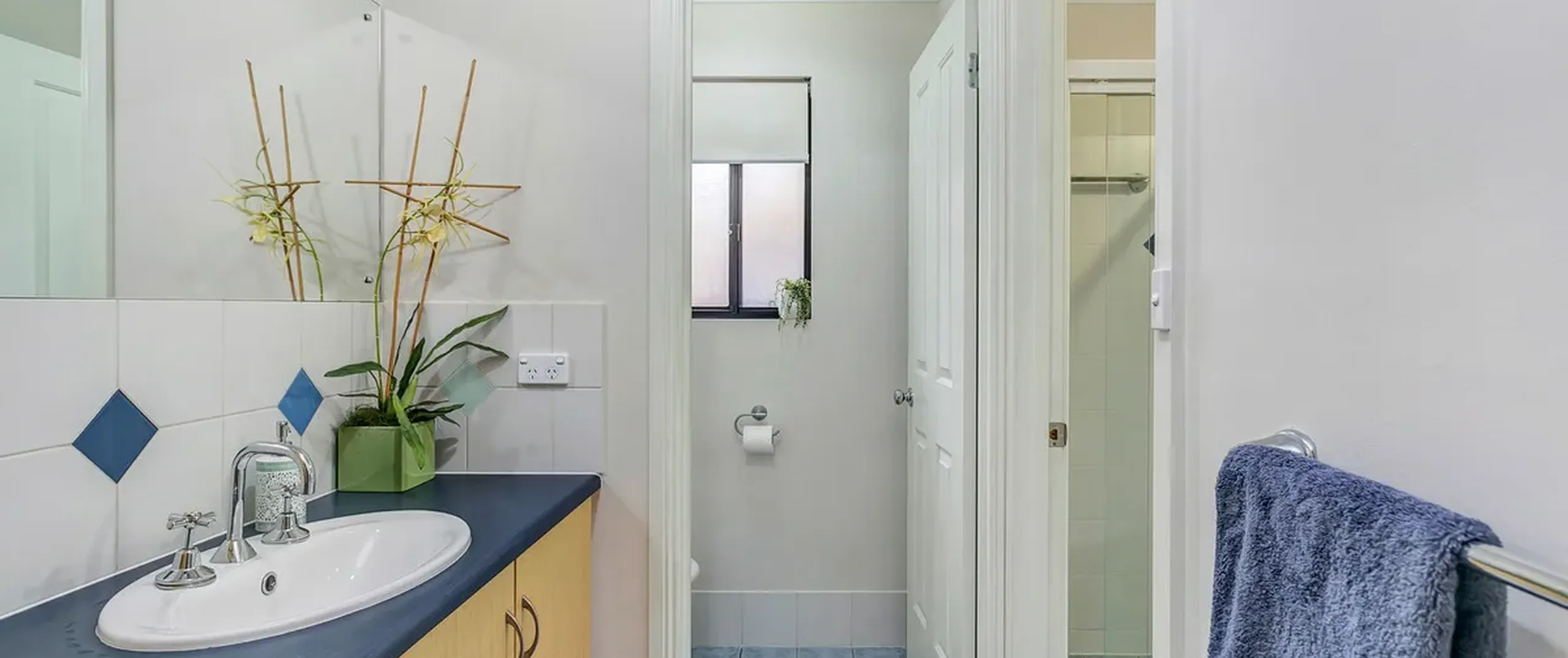 - Neat and tidy two-way bathroom with bath, separate shower and separate toilet