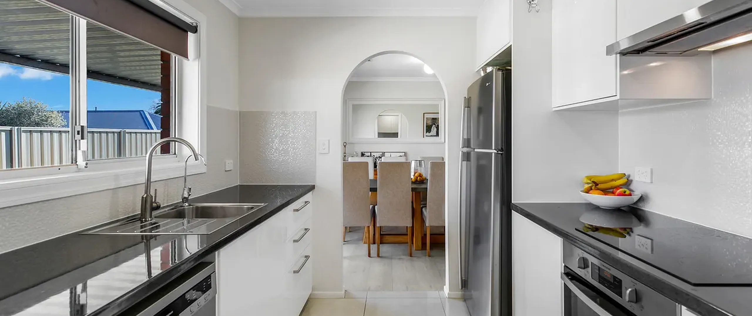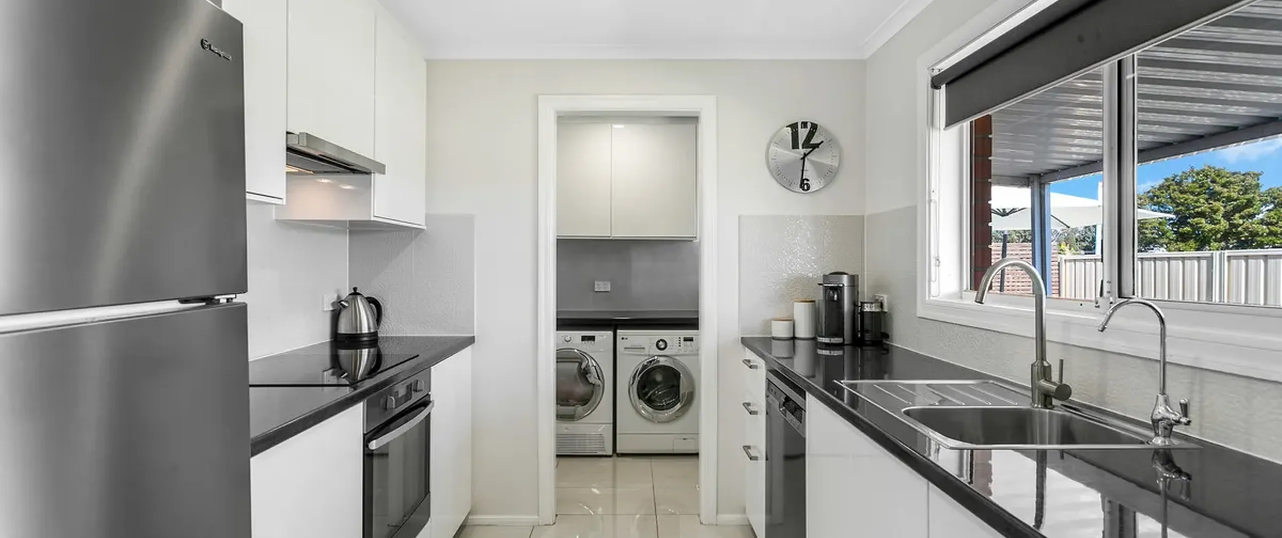 - Stylish kitchen with stainless steel appliances and ample cupboard and bench space