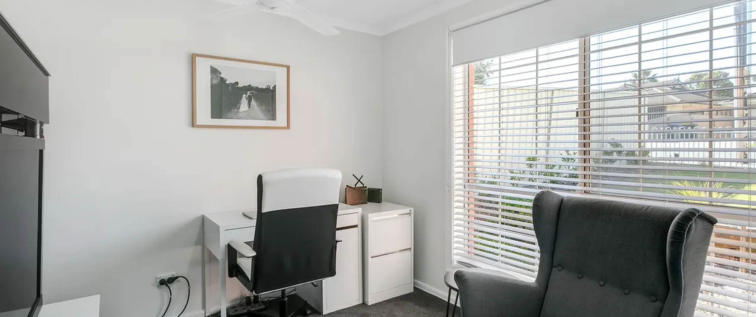 - Bedroom 2 with built-in robe and ceiling fan
