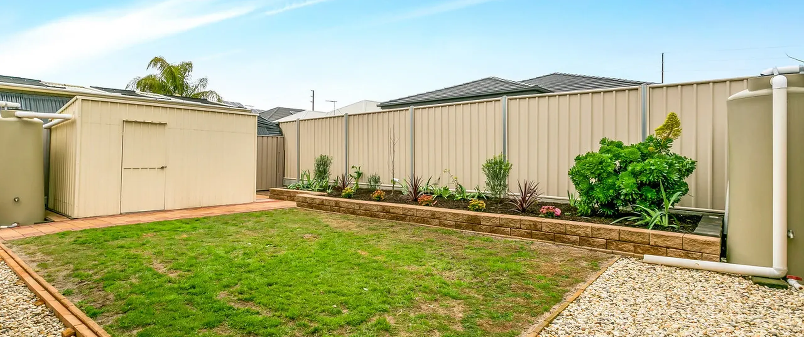 - Fully fenced, low maintenance yard with garden shed and 2x rain water tanks