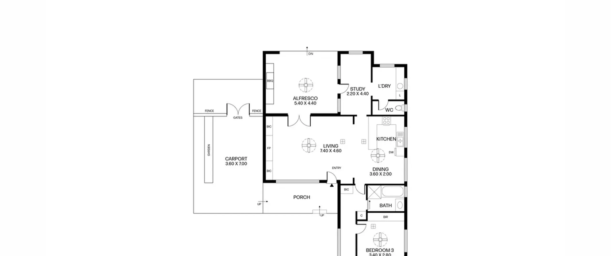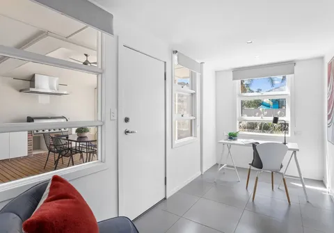 Inside you are greeted by a light filled living, dining and kitchen area complete with downlights and ceiling fans for year round comfort. The layout offers three bedrooms and one central bathroom to the front of the property with the list of features continuing with a separate laundry and powder room and a separate study with direct access to the outdoor area.